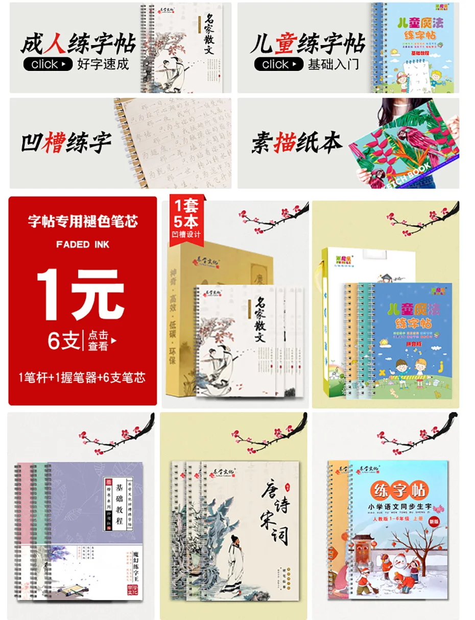 Книга для практики каллиграфии, многоразовая, 3 книгинабор, тетрадь...