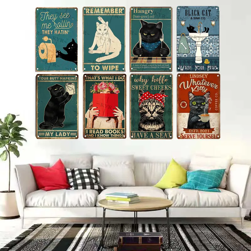 Шикарный кофейный Черный кот металлический Железный жестяной знак для бистро ресторана бара кухни фуккейков плакат художественный Настенный декор рекламный щит