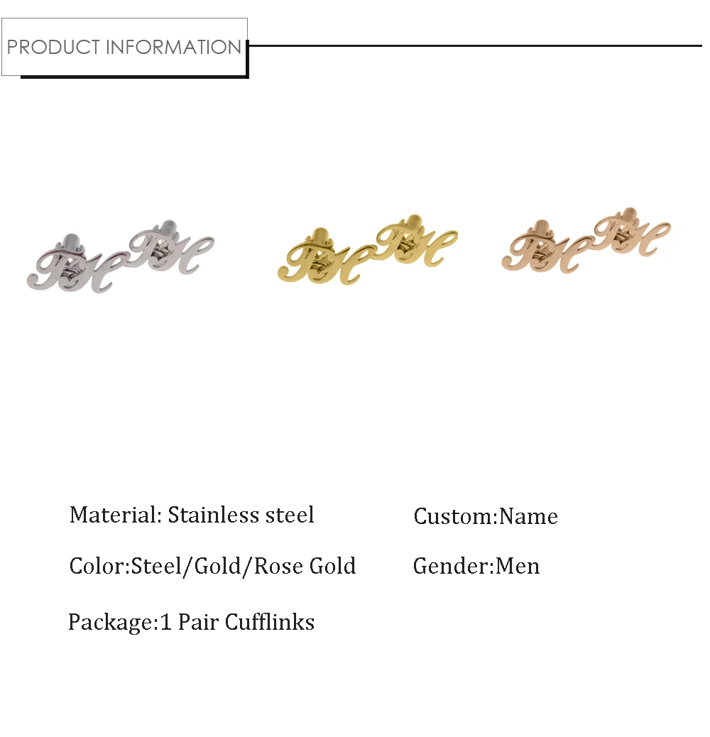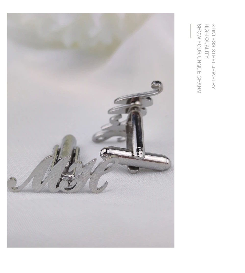 Изящные мужские запонки с буквами на заказ, ювелирные изделия с инициалами близнецов из нержавеющей стали, аксессуары для жениха, подарок для мужчин