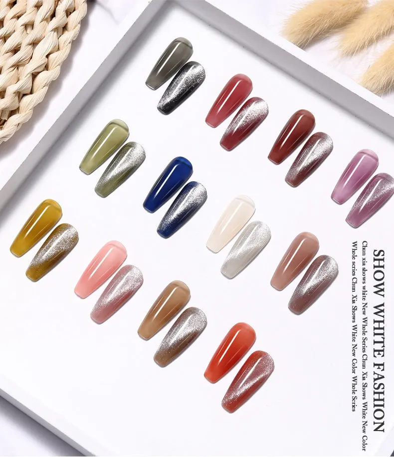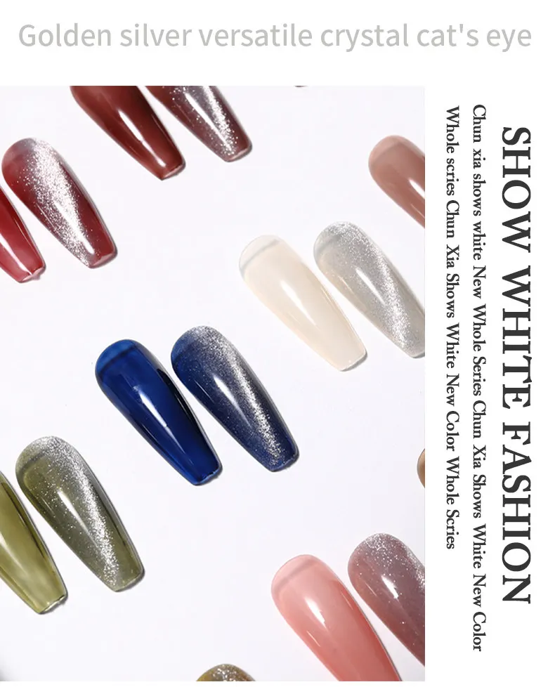 Цветной Радужный Гель-лак для ногтей 7,5 мл Золотые Серебряные Кристаллы кошачий глаз искусственные ногти полуперманентный отмачиваемый маникюр