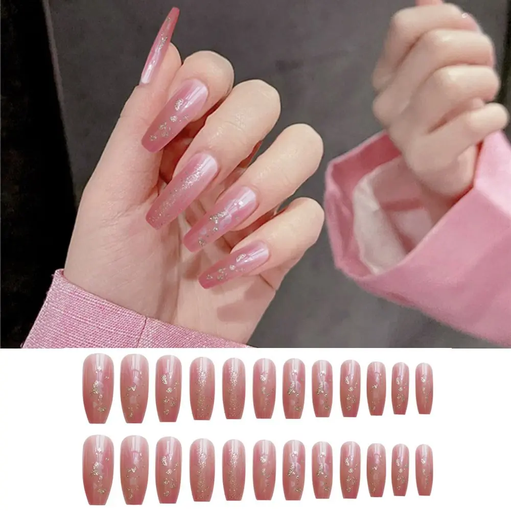 24 шт. блестящие съемные накладные ногти Длинные накладные ногти ба...