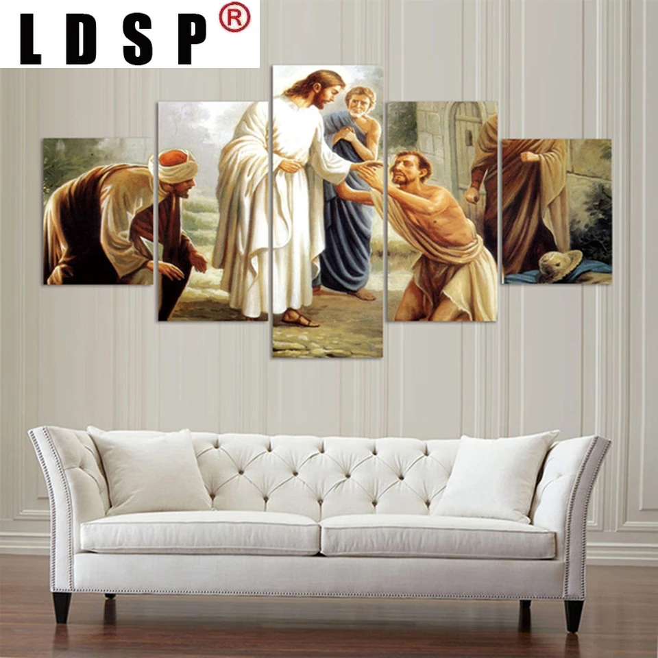 LDSP настенные художественные картины на холсте, 5 шт., картины с изображением Иисуса медсестры для гостиной, HD печатная современная живопись, домашний декор