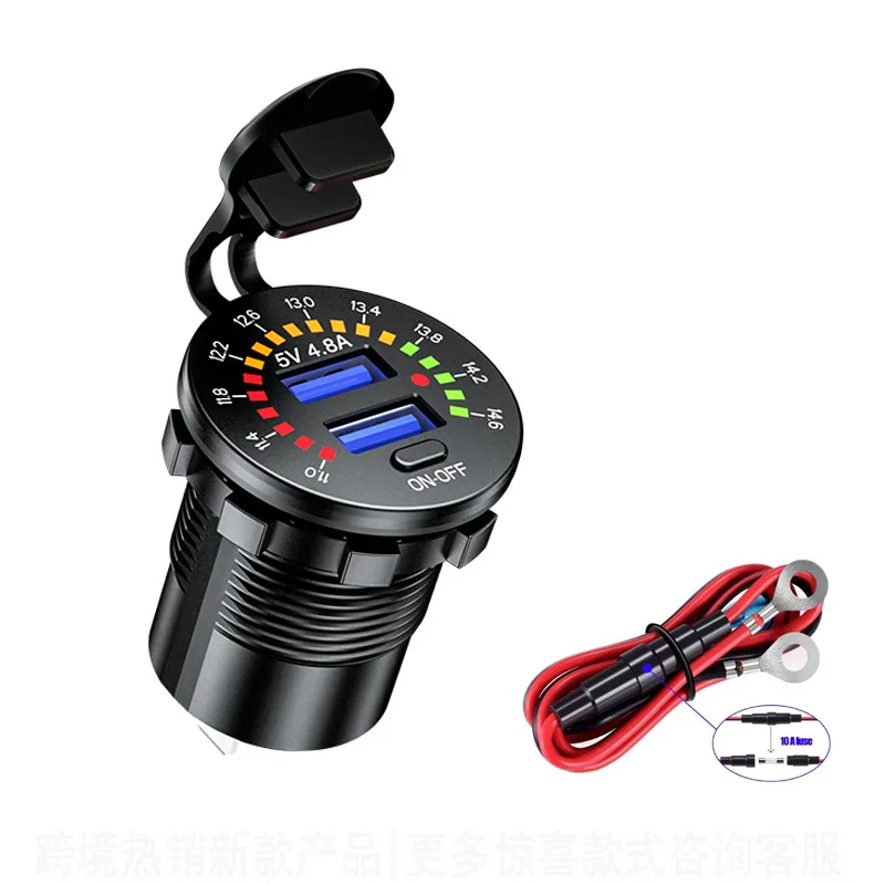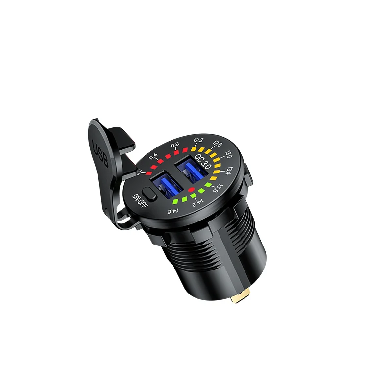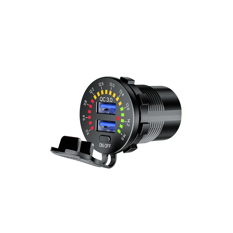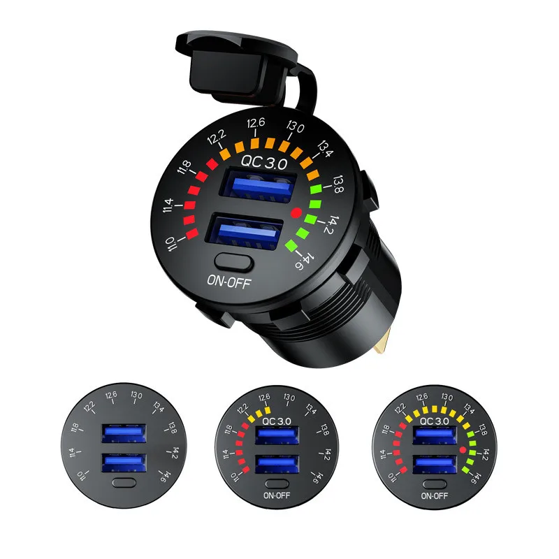 Автомобильное зарядное устройство USB QC3.0, быстрая зарядка с отображением напряжения для автомобиля, мотоцикла, вездехода, внедорожника, лодки, автомобильное зарядное устройство для телефона, планшета, компьютера