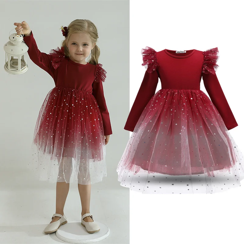 Рождественские платья для девочек, детская сетчатая юбка-пачка с блестками для вечеринки принцессы, детское платье для свадьбы, дня рождения