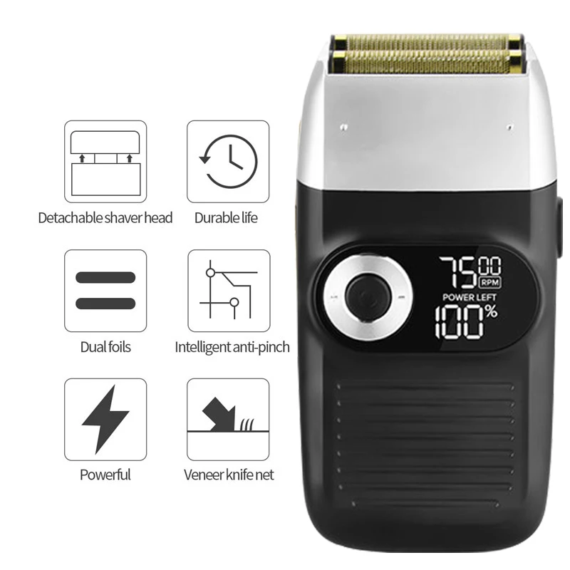 5V,5WМощный и тихий роторный двигательЗолотая титановая гипоаллергенная Фольга для бритья без раздраженияБритвенная система с 2 лезвиямиБеспроводной или проводные воздуходувки для работыUsb-кабель для зарядки3 скорости передачи, 6500/7000/7500 об/минЛитий-ионный аккумулятор 1400 мАчЖК-дисплей, напоминание о зарядке, напоминание о регулировке скорости, напоминание о доле заряда батареи2 часа время зарядки120 минут рабочего времениРуководство пользователя на английском и китайском языкахГарантия качества 2 годаПродавец не уведомит, когда завод заменит новую упаковочную коробкуСмазочное масло является жидким, относится к товарам и товарам, авиакомпания и таможня не принимают транзитные перевозки, пожалуйста, обратите внимание! Спасибо за понимание, хороший день