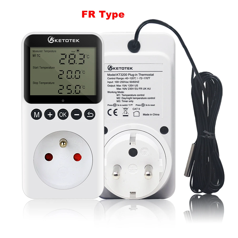KT3200 Штепсель-термостат таймер гнездо электронный регулятор температуры Таймер регулятора переключатель розетки с 3 м датчик ЕС/FR/США/Великобритания
