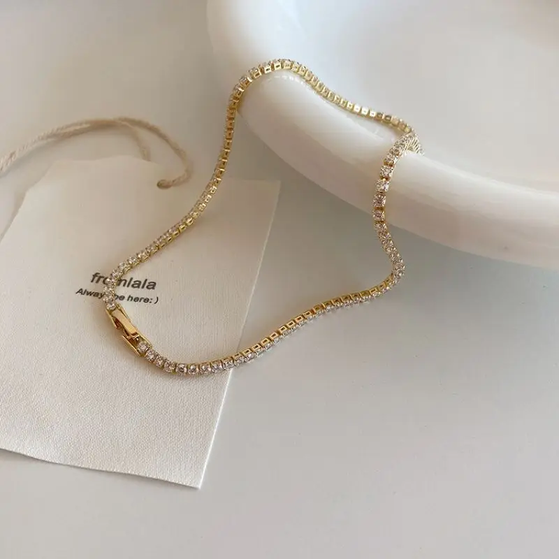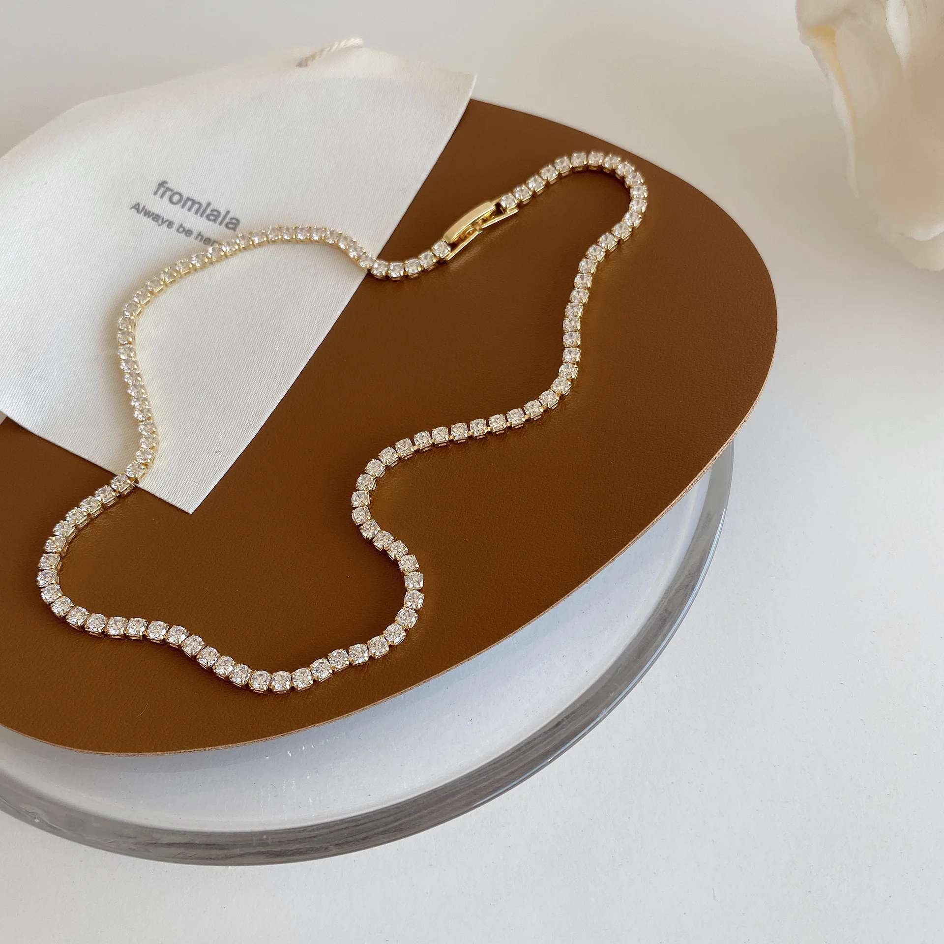 Модное позолоченное ожерелье-чокер 14k для женщин, нежная циркониевая цепочка, ювелирные изделия для девочек, Кристальные подарки для влюбленных, ювелирные изделия для пар