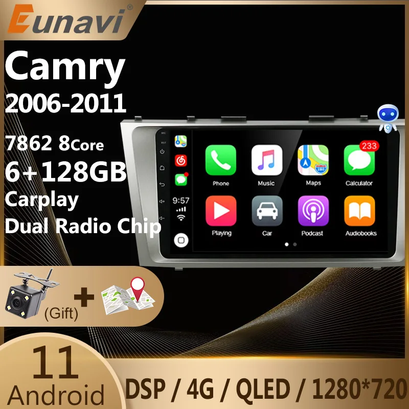 Автомагнитола Eunavi QLED, 2 Din, 4G, Android 11, мультимедийный видеоплеер 2Din, DVD, GPS, для Toyota Camry 6, xв 40, 50, 2006 - 2011