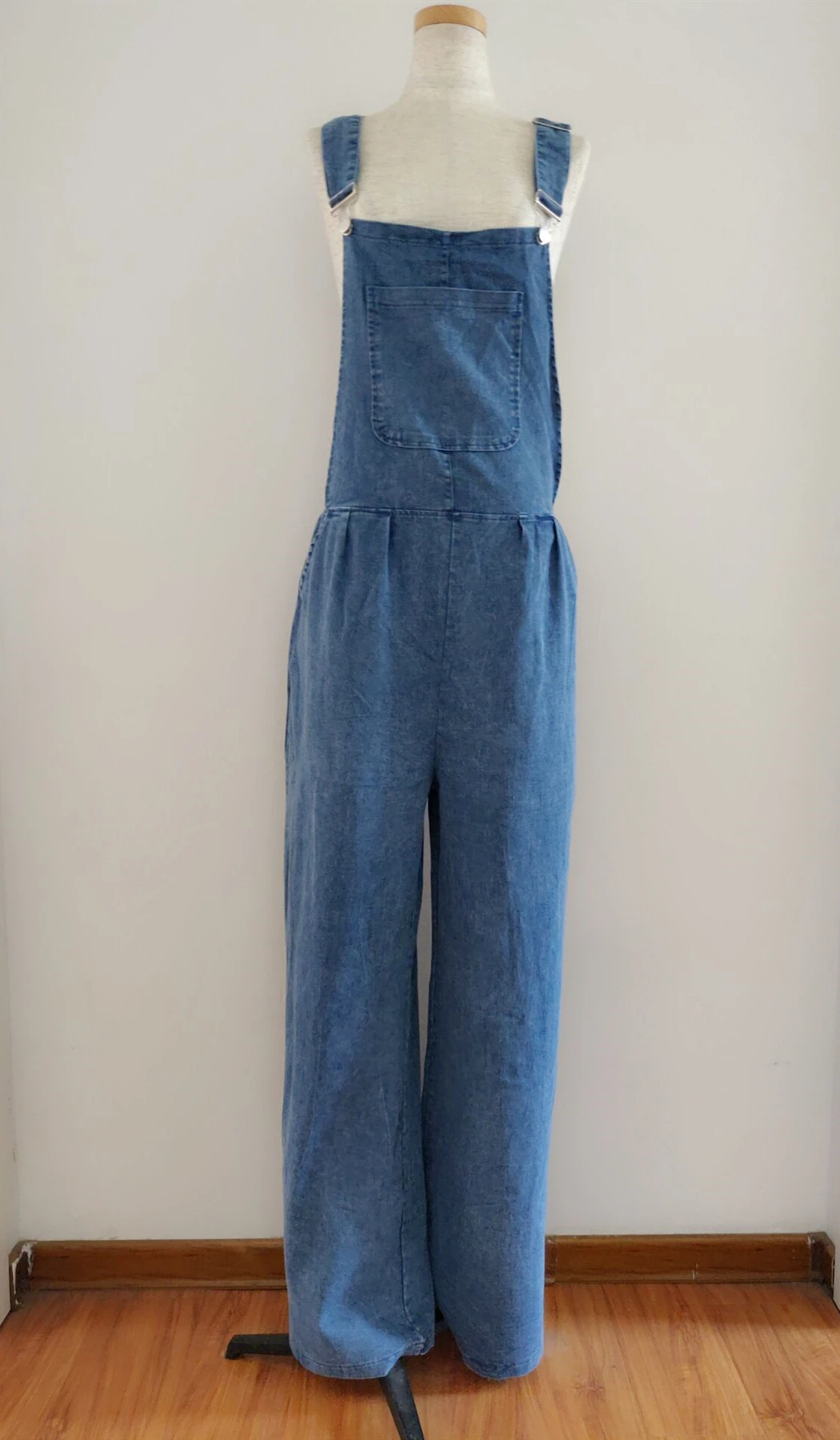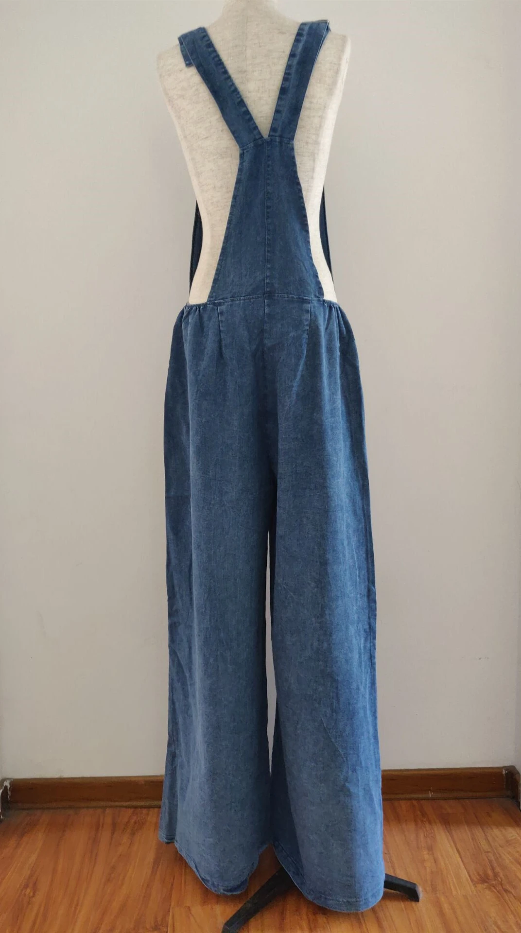Комбинезон женский джинсовый с широкими штанинами, на осеньлето
