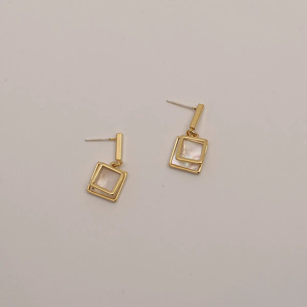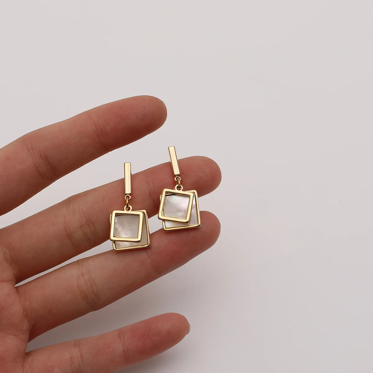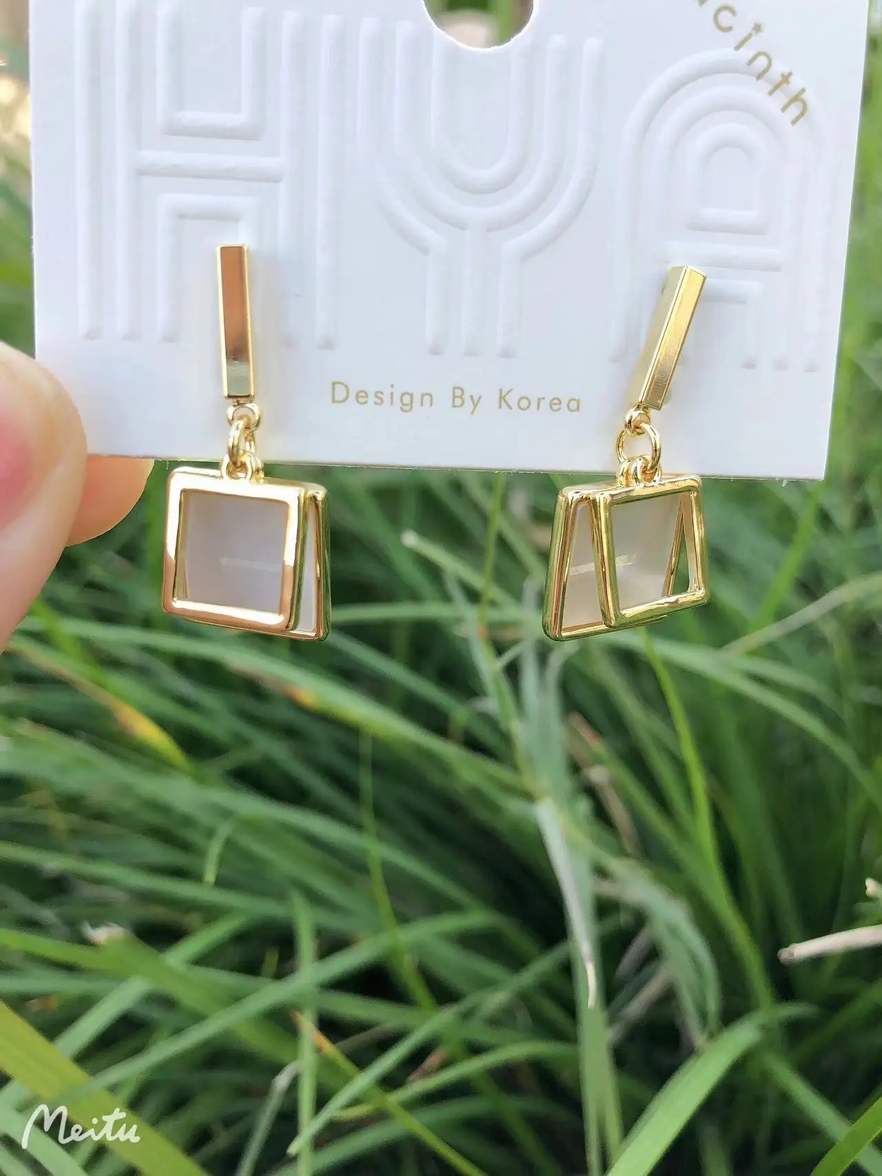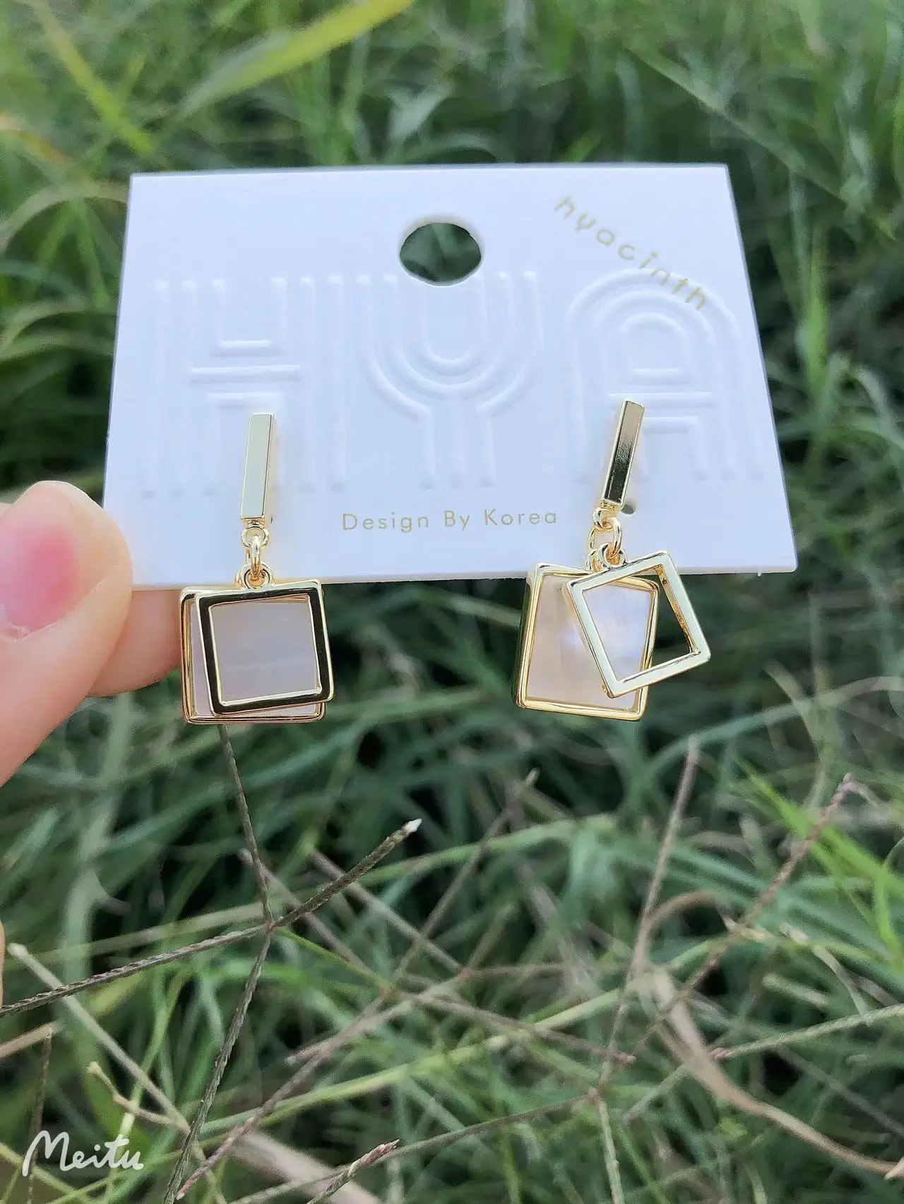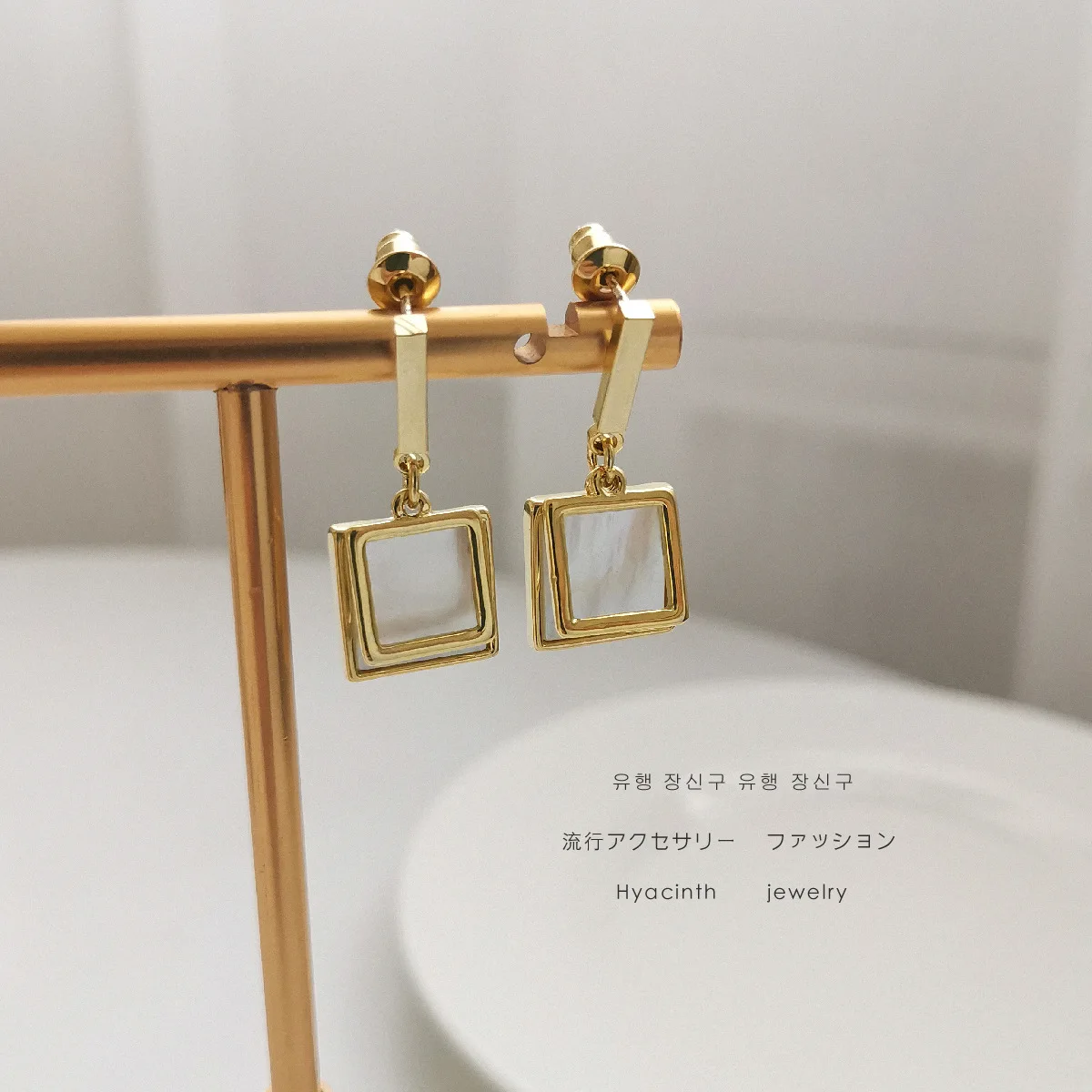 SS925 серебряные серьги-гвоздики с ушками и жемчугом для матери с квадратным латунным W/14k настоящее золото Южная Корея ювелирные изделия для женщин HYACINTH