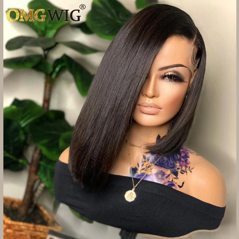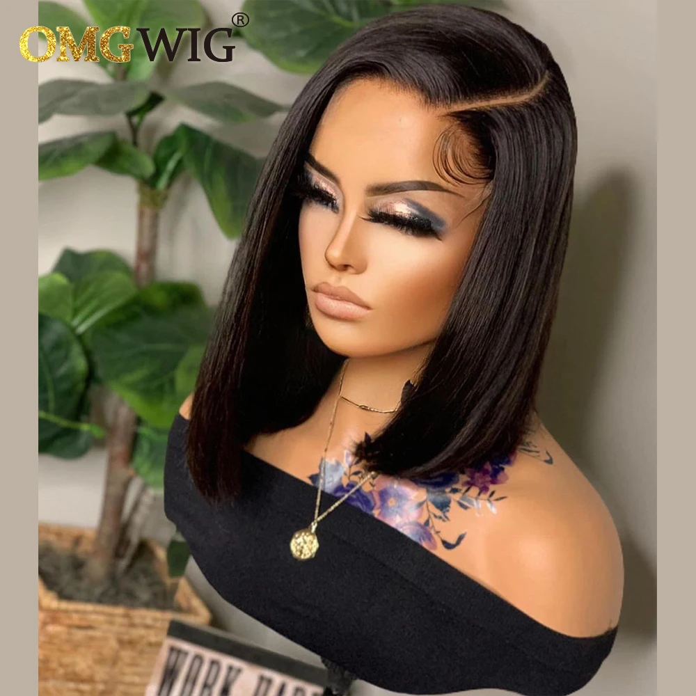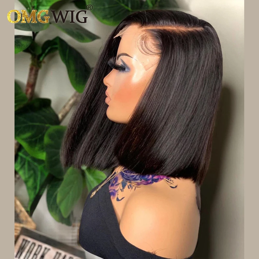 Прямые парики боб Bone для женщин, парики из натуральных волос на сетке 4x4, бразильские натуральные волосы, короткий парик Боб со швейцарской сеткой спереди