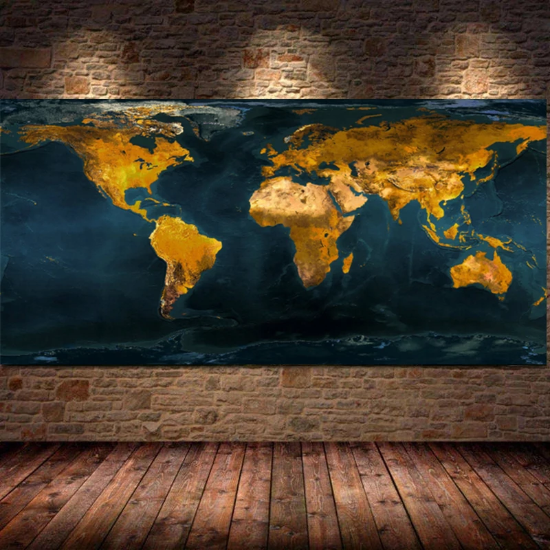 Картина черно-Золотая карта мира, Картина на холсте, современный кл...