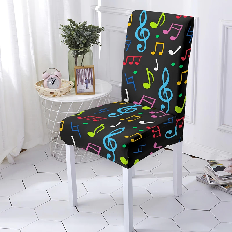 Психоделические музыкальные ноты эластичный чехол на стул универсальные размеры Чехлы для столовых для кухни банкета гостиной Декор