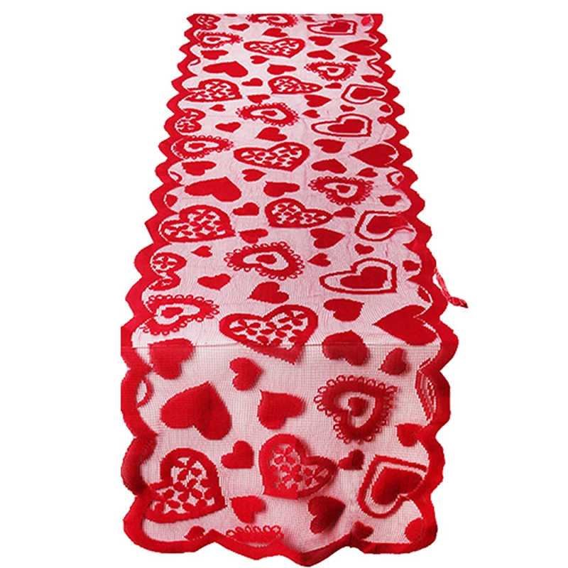 Кружевная скатерть с красным сердцем, прямоугольная скатерть для ст...