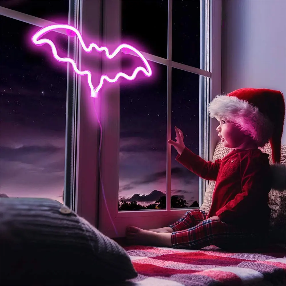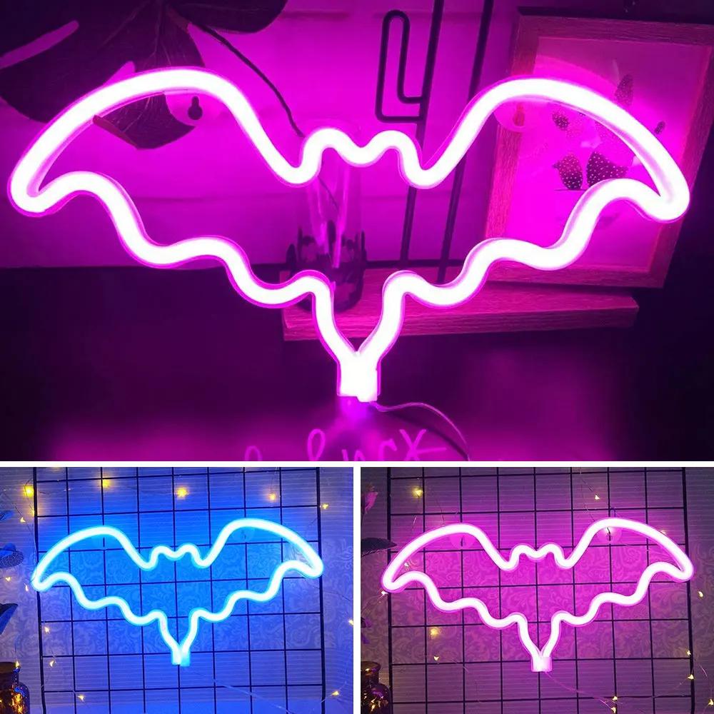 Светодиодный неоновый светильник летучая мышь неосветильник s Хэллоуин светодиодный неоновый светильник настенное Искусство украшение спальни подвесной ночник праздничный Декор дропшиппинг
