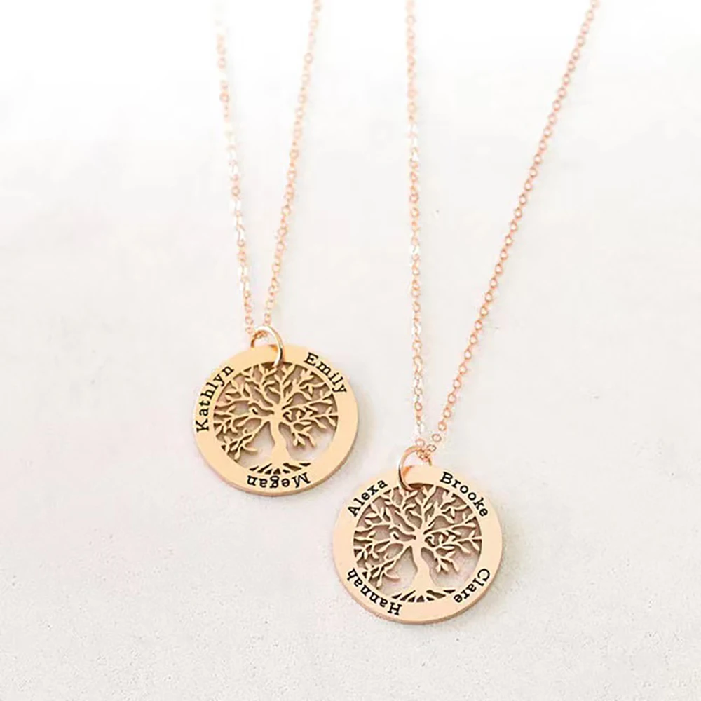 На заказ Дерево жизни именные ожерелья персонализированные Резные буквы из нержавеющей стали ювелирные изделия для женщин Семья Рождественский подарок