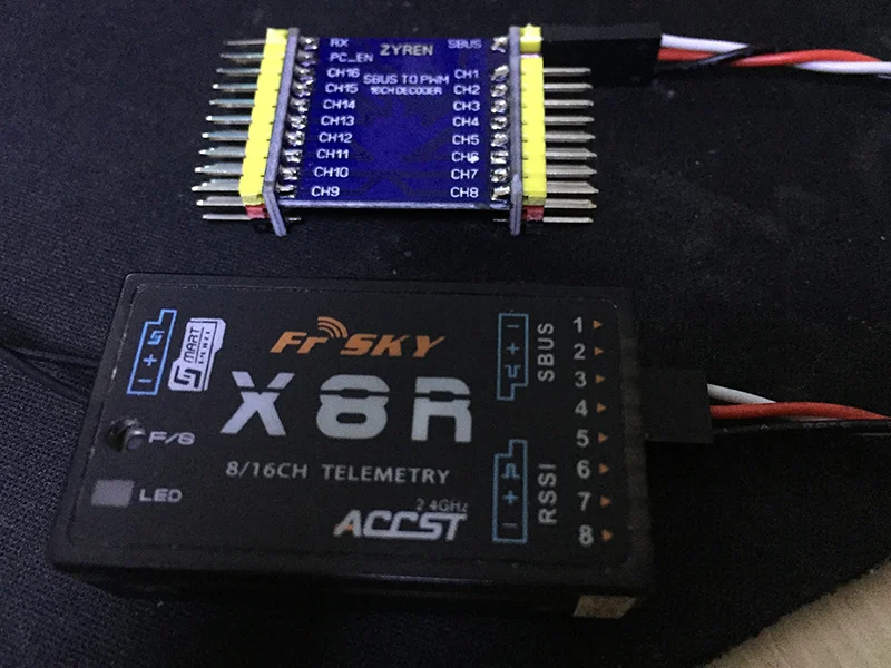 Например, приемник FRSKY X8R, только 8 интерфейсов PWM, но этот приемник может использовать выход порта SBUS 16 каналов, но если вы хотите использовать 16-канальный выход PWM, вы можете работать вместе с частотой двойного приемника, но использование декодера sbus в pwm, Только необходимый преобразователь приемника может достичь всех 16-канальных выходов ШИМ.