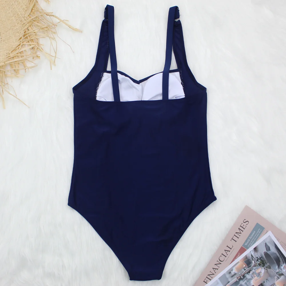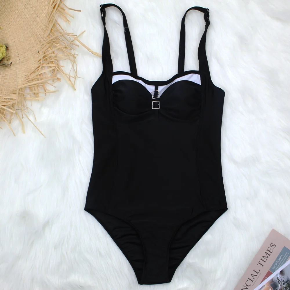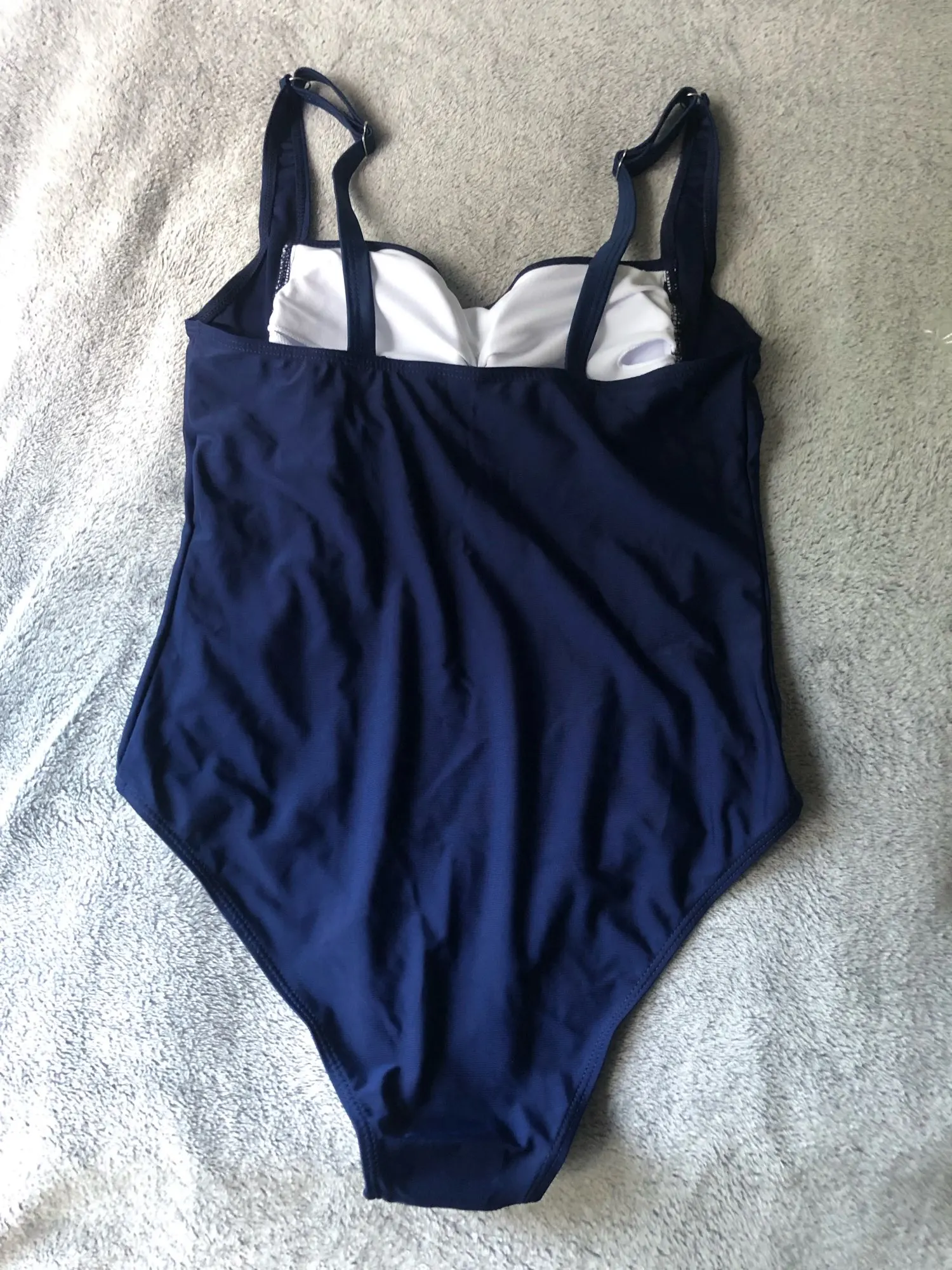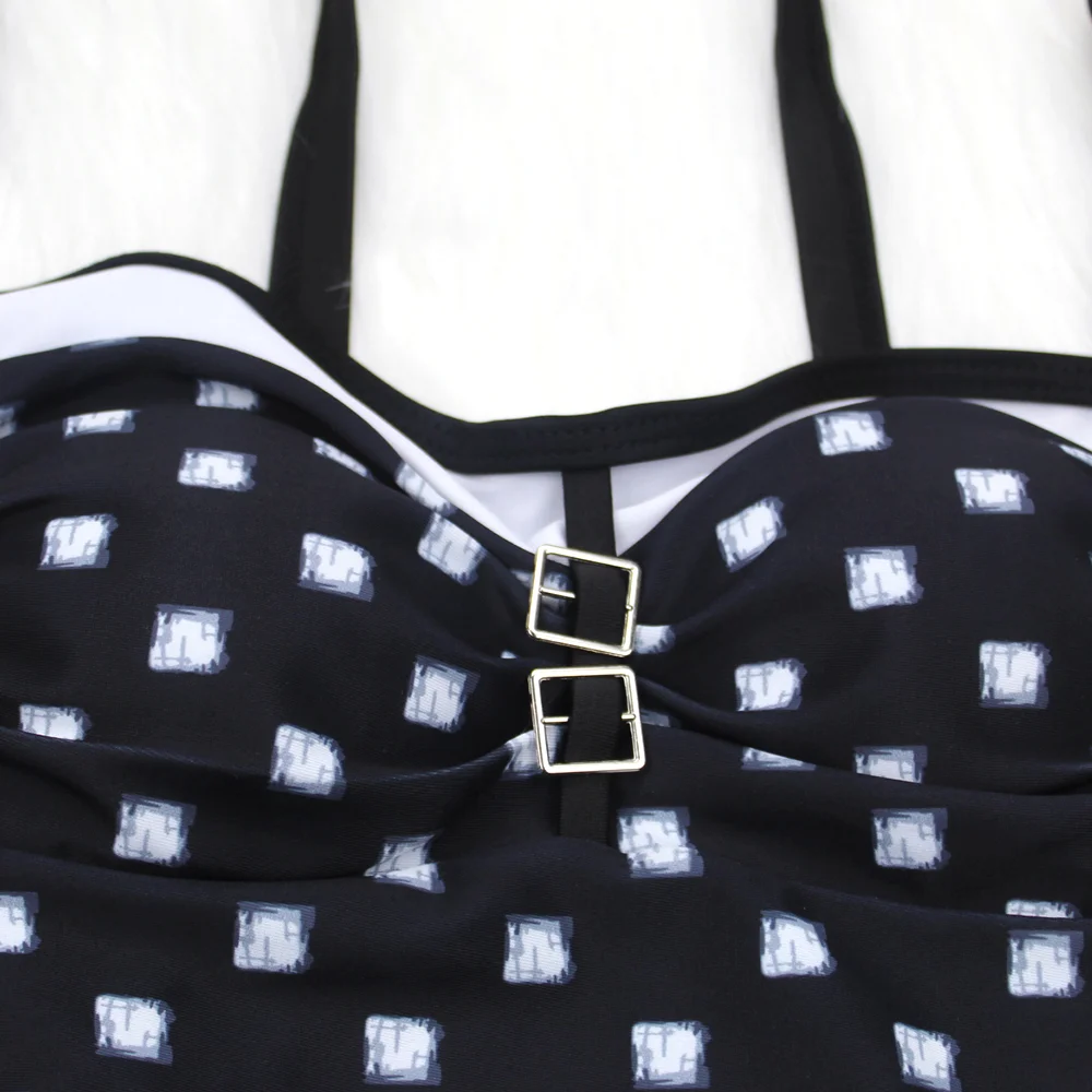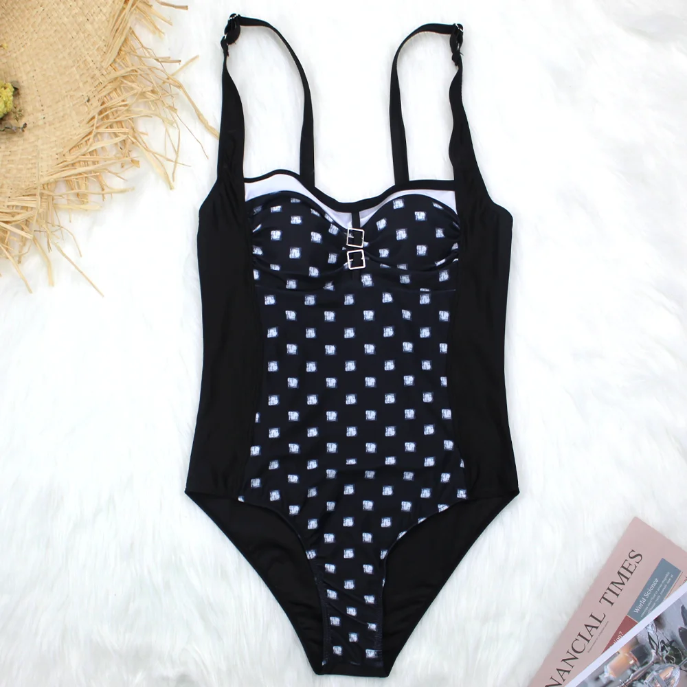 Новый слитный купальник с белой отделкой, женский купальник большого размера, боди с открытой спиной и пуш-ап в горошек, винтажные летние пляжные облегающие костюмы