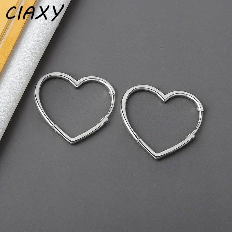 Большие серьги в форме сердца CIAXY 925, женские серьги в форме сердца с пряжкой для сердечек, темпераментные элегантные женские ювелирные изделия для ушей в двух цветах