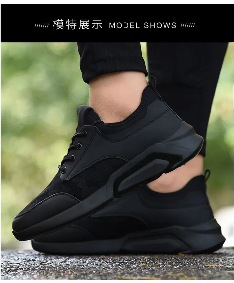 Мужские повседневные рабочая обувь, черные кроссовки из искусственн...