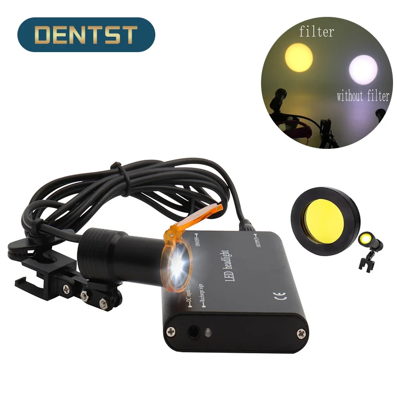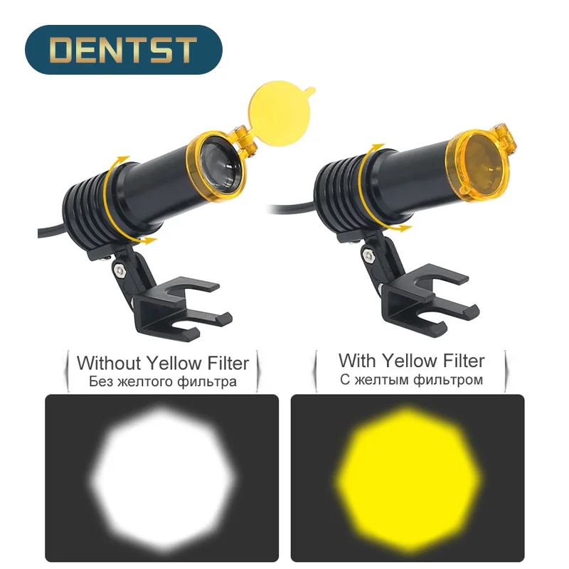 Светильник на голову для стоматологической лупы с желтым фильтром, ...