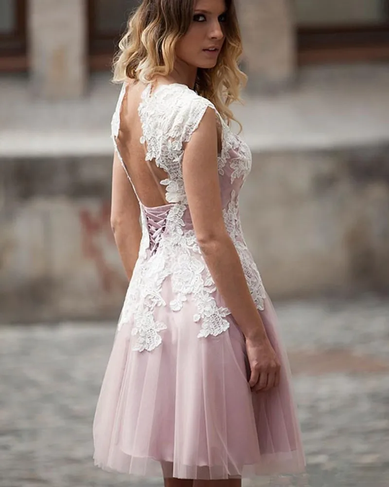Элегантное платье без рукавов Короткие свадебные платья бак для кол...