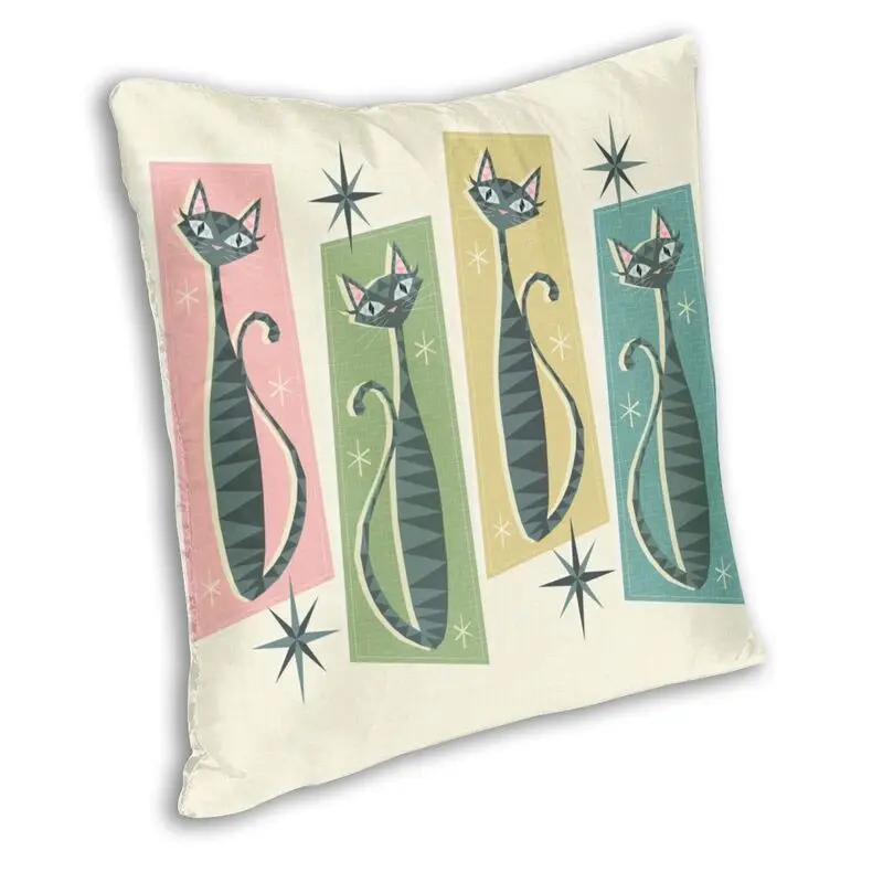 Винтажная черная кошка, Современная наволочка для подушки, украшение для дома, мяу середины века, ретро, атомные котята, наволочка для подушки, чехол для дивана, подушки