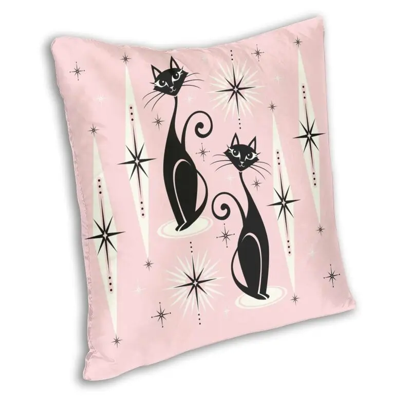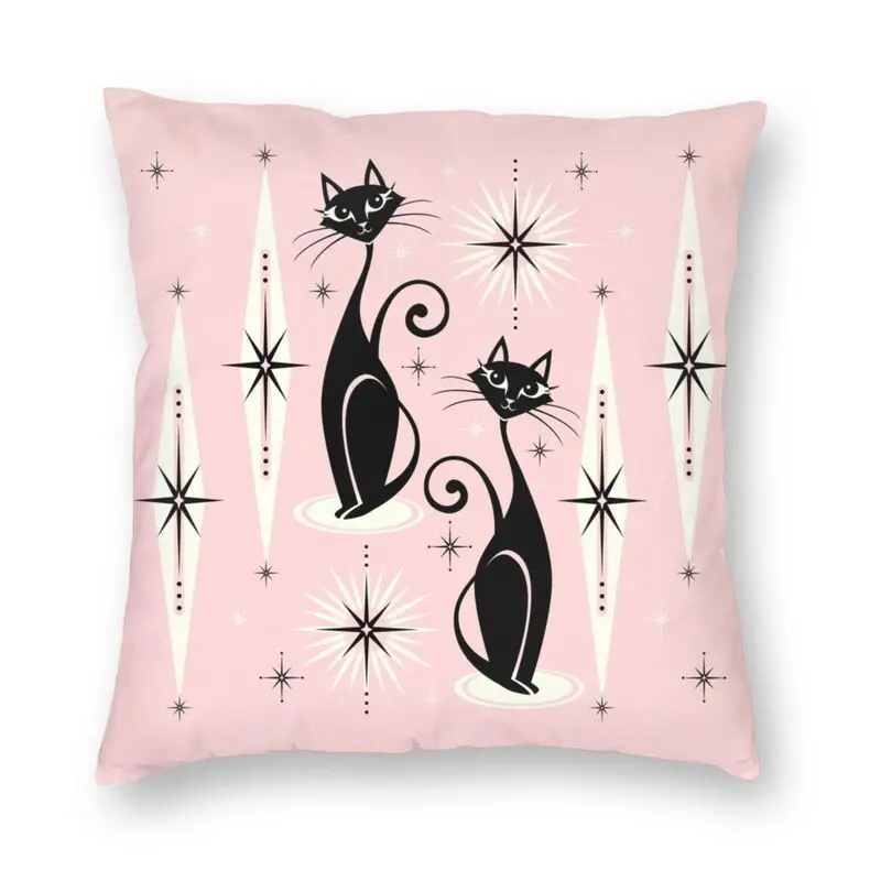 Чехол-подушка в скандинавском стиле с изображением милой черной кошки, домашний декор, мяу в стиле ретро середины века, Детские котята для дивана, гостиной