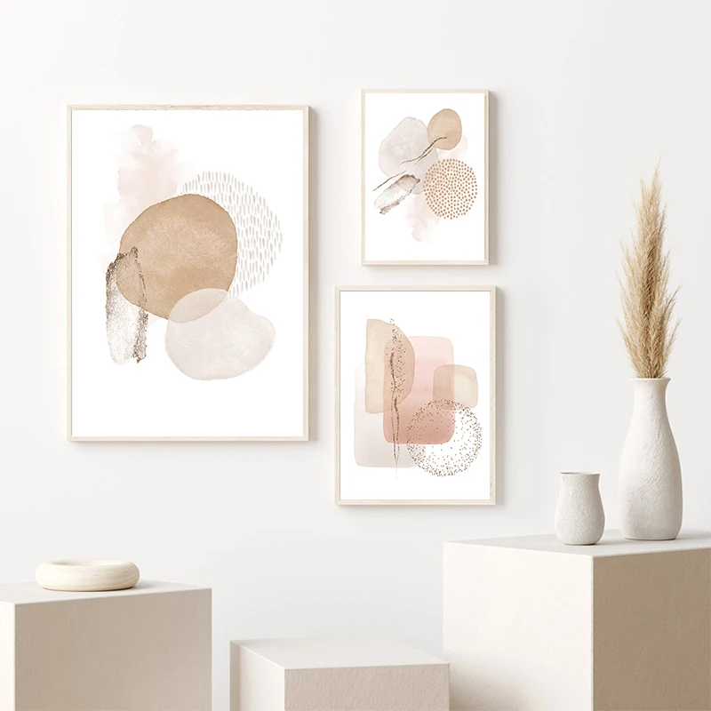 Современная Абстрактная бежевая розовая Геометрическая Картина на холсте постер и печать на стене в стиле бохо картины для спальни гостиной домашний декор