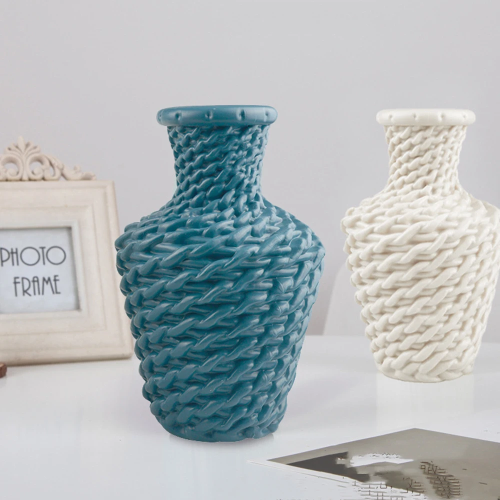 Ваза из искусственного ротанга, современный пластиковый контейнер для цветов в гостиной, в скандинавском стиле, украшение для дома