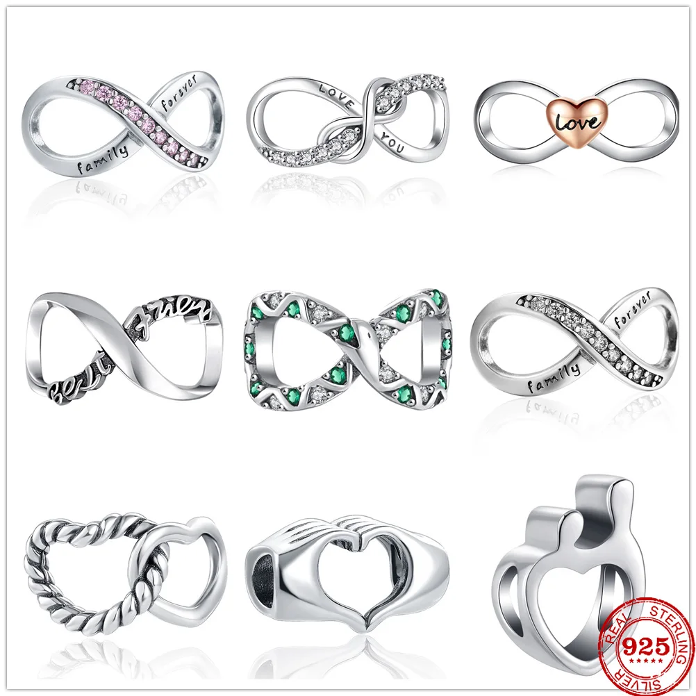 Новинка, бесконечность, семья forever Love You брелок лучшие друзья DIY, изящные бусины, подходят к оригинальным шармам Pandora, серебро 925 пробы, браслет, ювелирные изделия