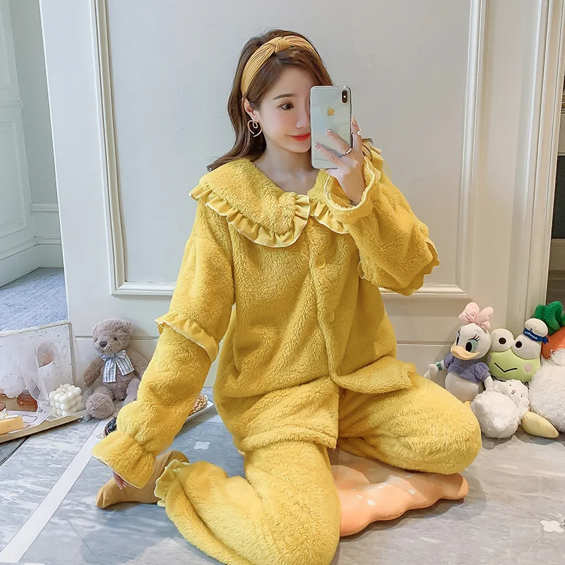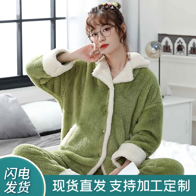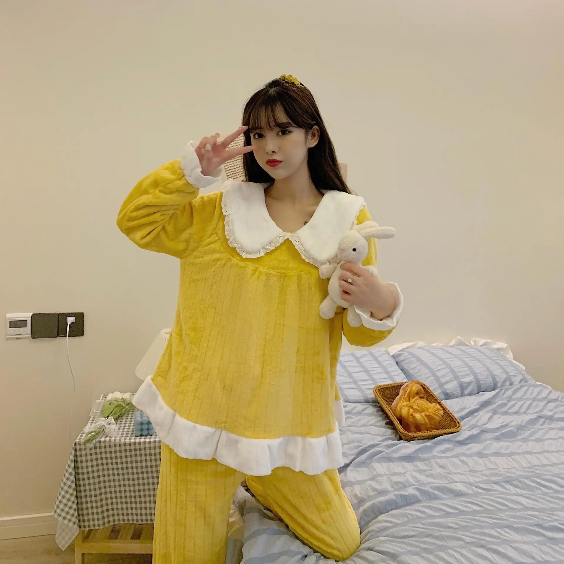 Женская Фланелевая пижама, зимний пижамный комплект, весенний и Теп...