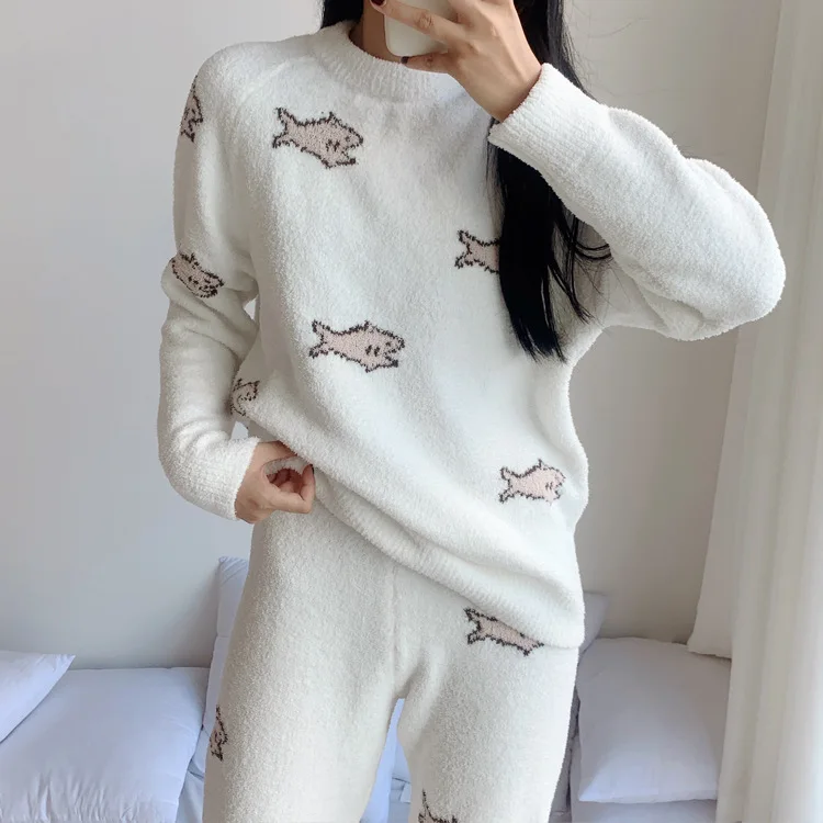 Теплые флисовые зимние женские пижамные комплекты, фланелевые Топы ...