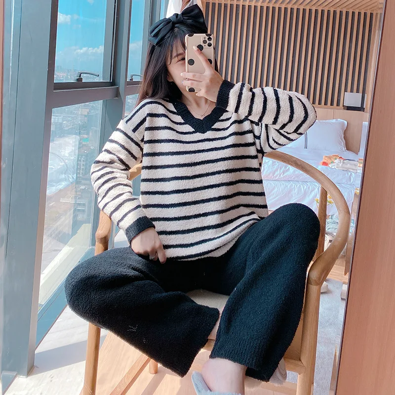 Сказочный осенне-зимний модный пригородный костюм Коралловая и бархатная верхняя одежда Повседневный свободный костюм с эластичной талией