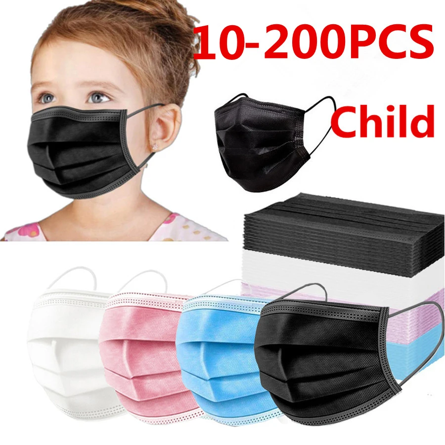 10-200 шт., одноразовые маски для детей, 3 слоя
