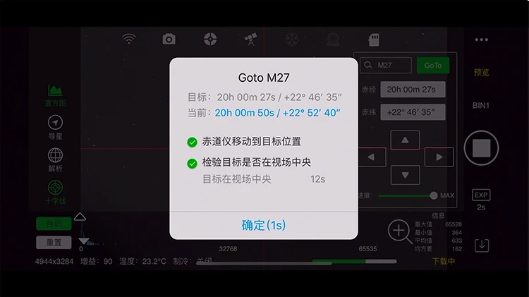 Onekey GoTo: встроенная небесная база данных, точность в одно нажатие может быть достигнута после выбора целевого устройства.