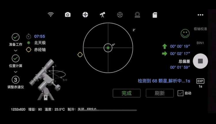 Калибровочная полярная ось: выполните функцию мощного разбора, для завершения калибровки угловой второй полярной оси требуется всего несколько минут.