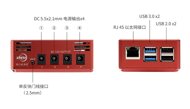 ASIAIR оснащен легким модулем управления питанием, на боковой части предохранителя 4 индивидуального постоянного тока 5,5*2,1 мм, выходная мощность, интерфейс кабеля затвора для SLR-камеры 1 отдельный, USB 2,0 и USB 3,0 с каждым интерфейсом 2 в отдельности. Стабильный и надежный источник питания, богатый и разнообразный интерфейс, простая и упорядоченная маршрутизация.Кроме того, он оснащен свободным пространством для хранения 84 ГБ (карта 20GYesTFcard + диск 64 ГБ), что позволит вам снимать достаточно за раз.