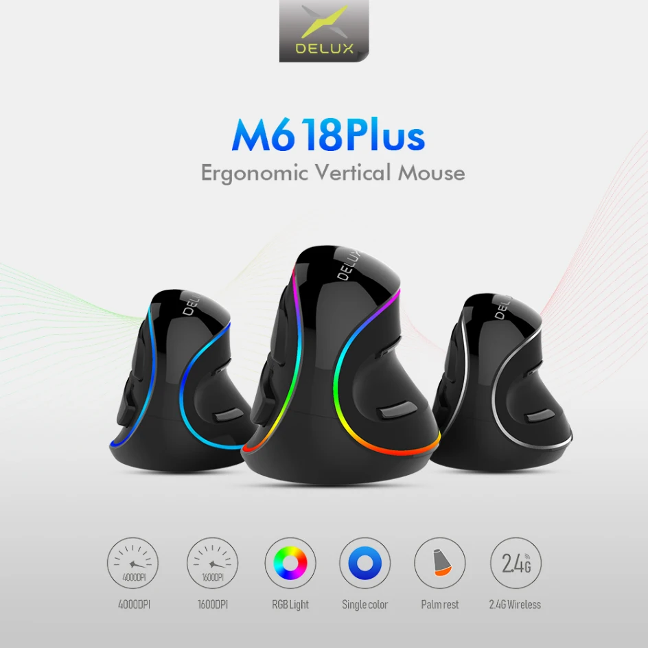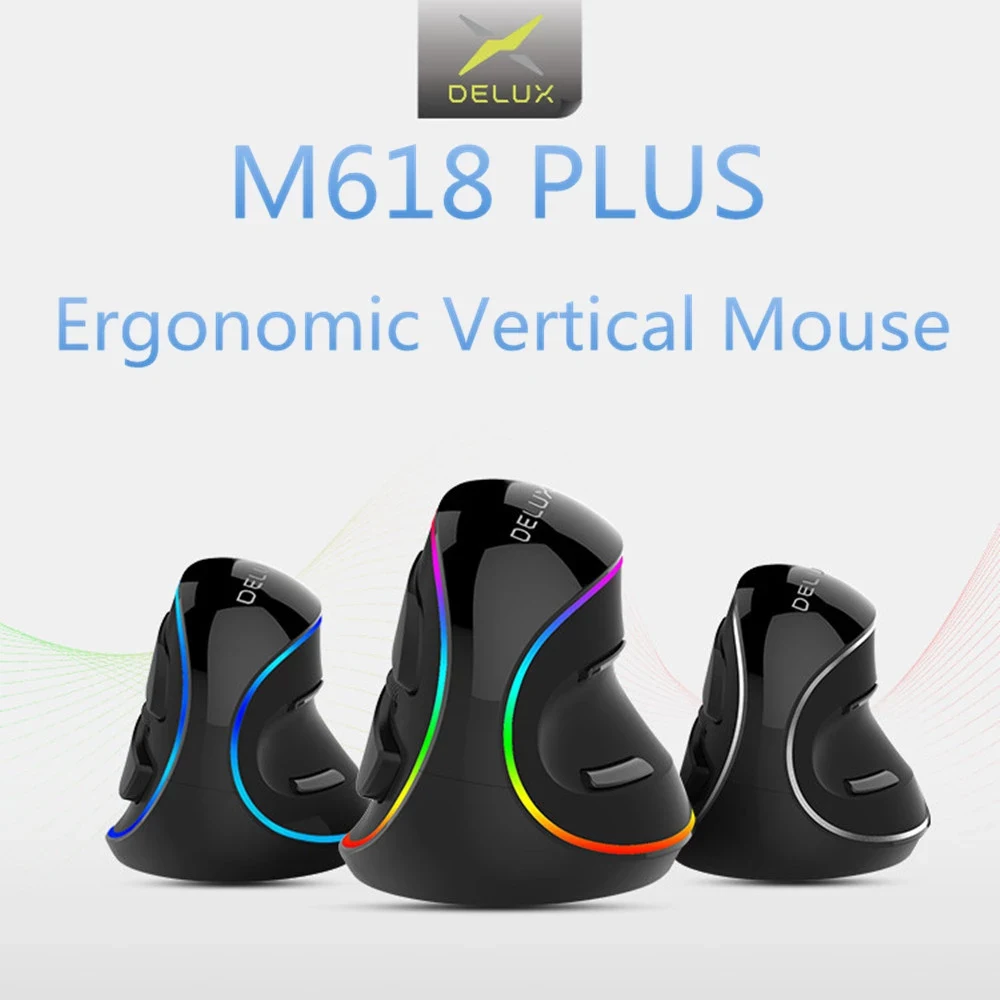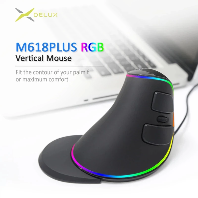 Delux M618 PLUS RGB вертикальная Проводная эргономичная мышь с захватом, оптическая мышь для правой руки, анти-мышь, беспроводная офисная игровая мышь для ПК