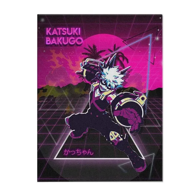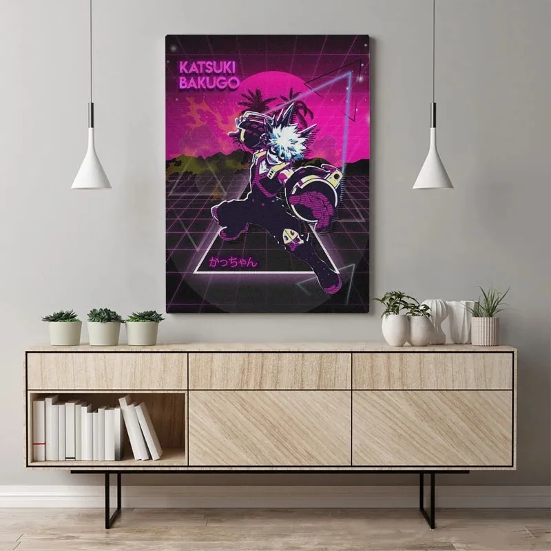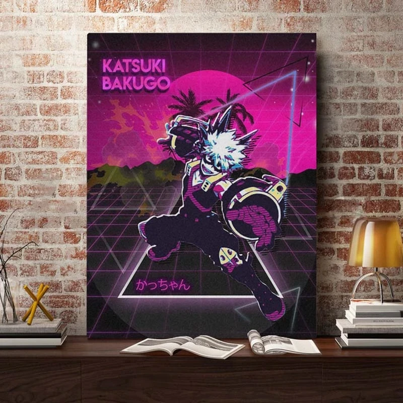 Плакат Katsuki Bakugo Bnha Retrowave, аниме, холст, настенное искусство, Hd принты, модульная живопись, картина для ребенка, детской комнаты, домашний декор
