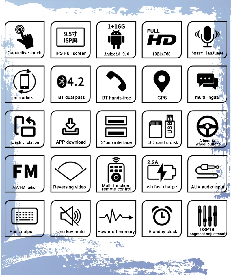 Автомобильное радио с Bluetooth 9,5 ''2din Android Мультимедиа MP3 MP5 плеер USB 1 + 16G TF GPS IPS сенсорный экран Поворот на 90