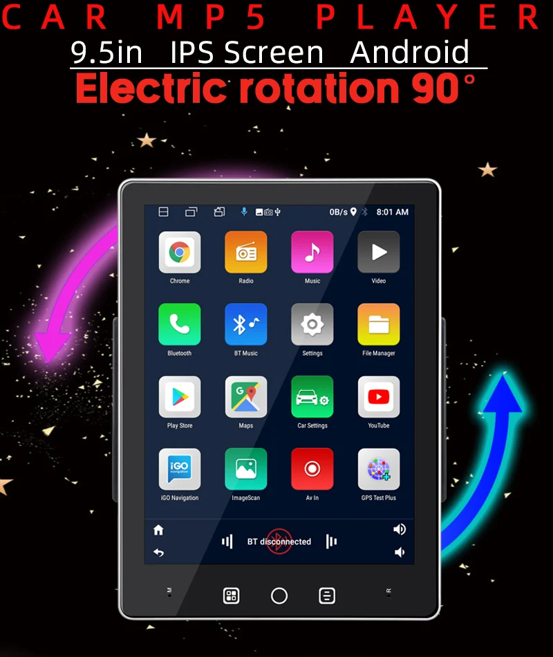 Автомобильный 2 din ANDROID плеер 9,5 дюйма IPS Автомобильный Уровень Электрический вращающийся Android плеер