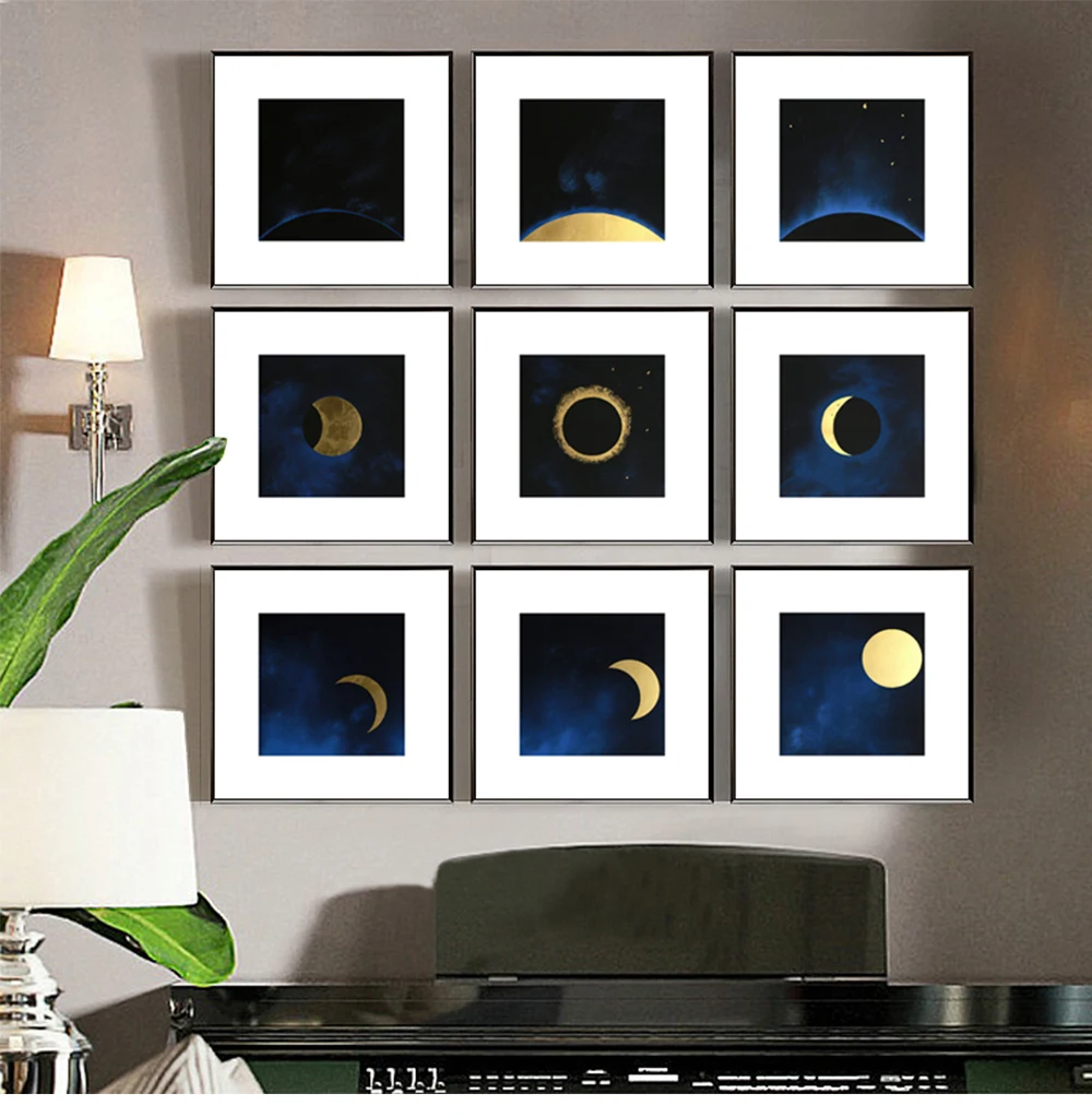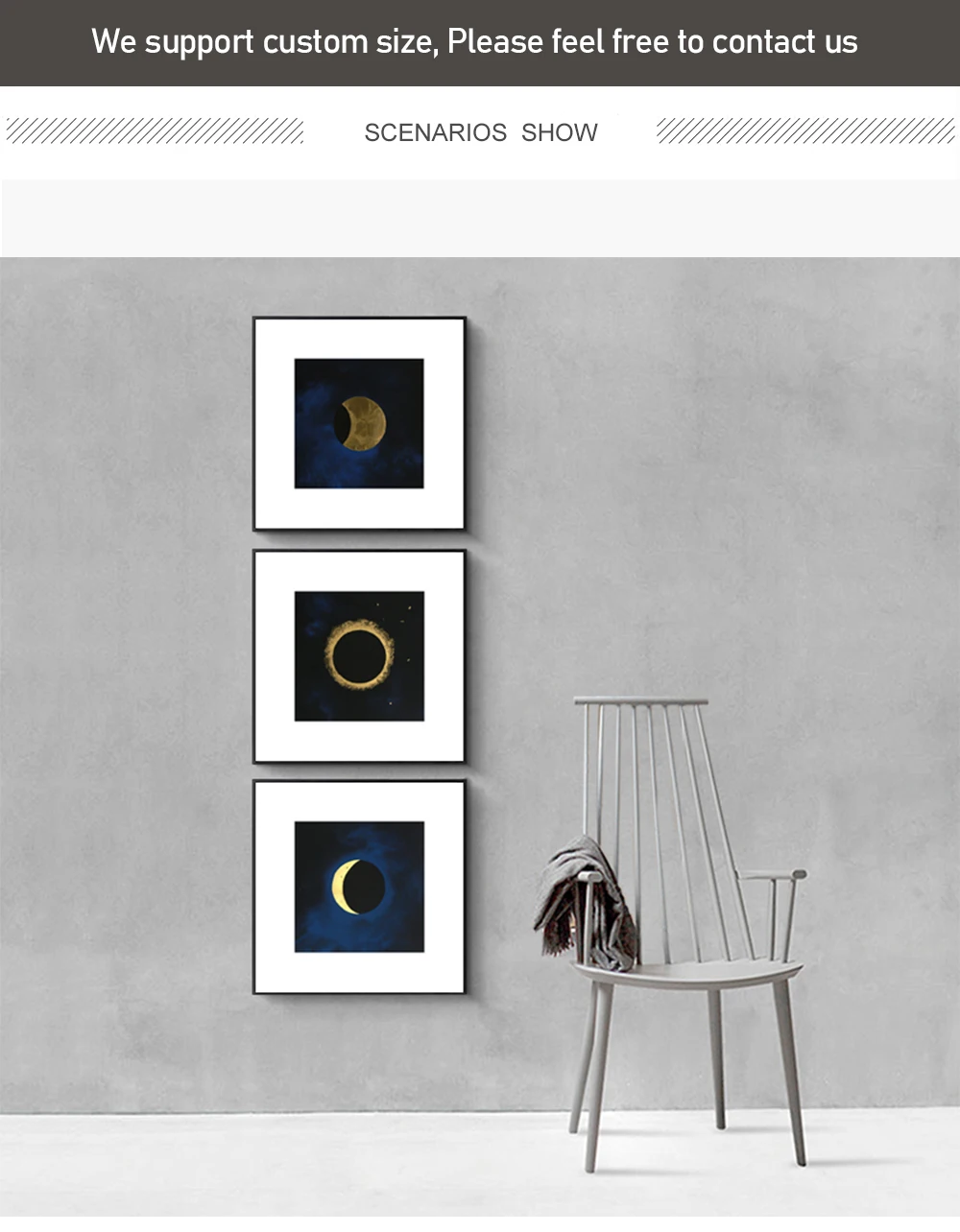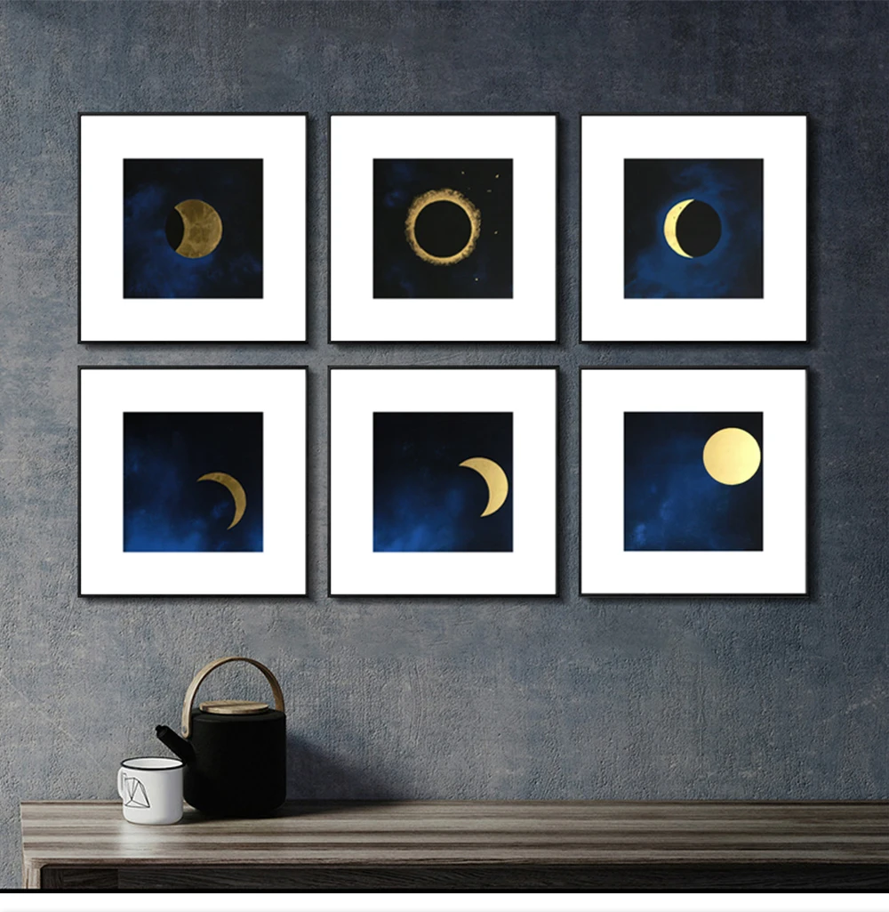 Минималистское черно-белое лунное затмение, настенное искусство, постер, абстрактный Рисунок картин, нордический домашний декор, фаза Луны, Картина на холсте