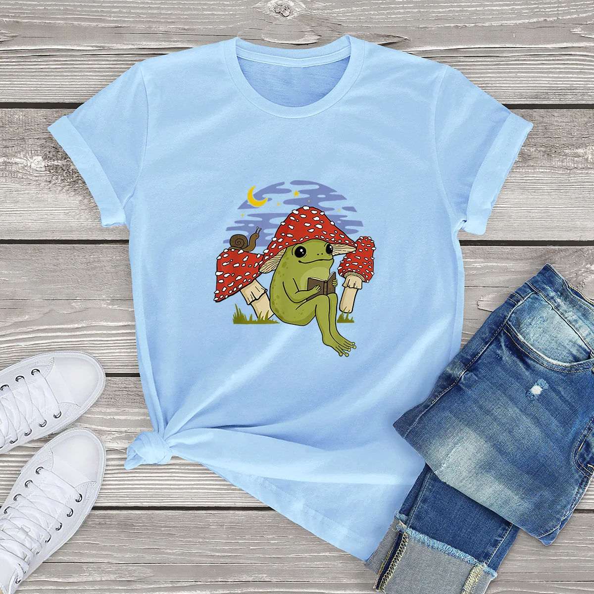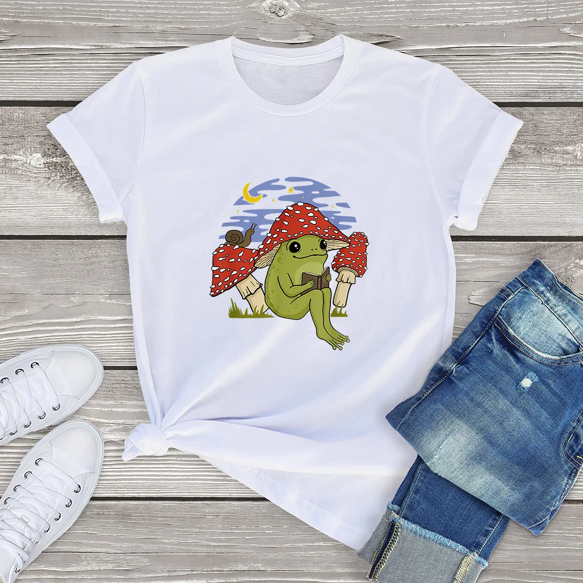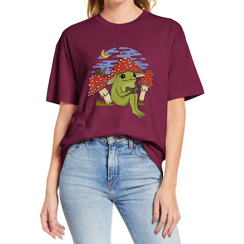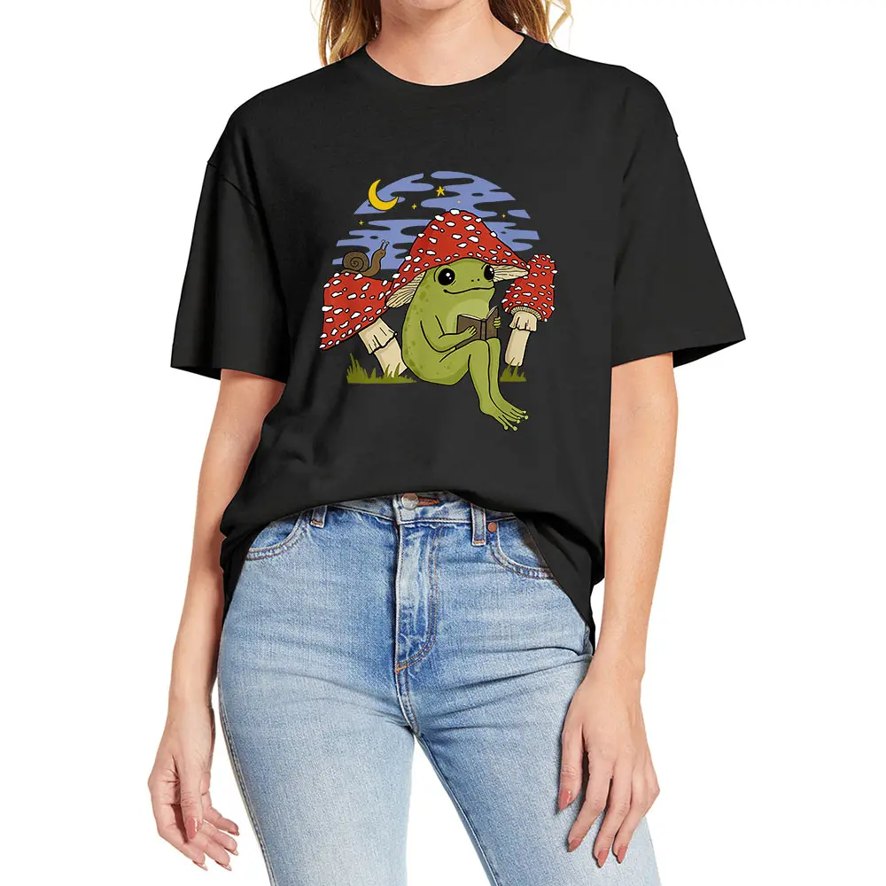 Футболка женская хлопковая, для чтения, 100%, с принтом лягушки, новинка, повседневная, европейского размера, Лето шапка грибовидной формы