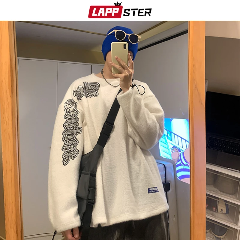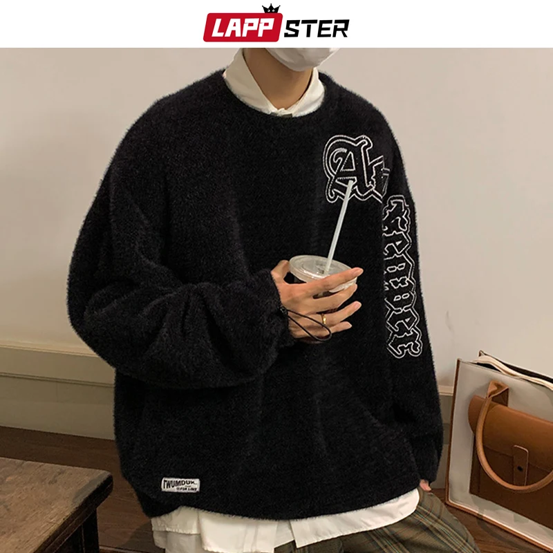 Мужской вязаный Свитер оверсайз LAPPSTER в стиле Харадзюку, 2022, мужские винтажные модные пуловеры в Корейском стиле, мужские свитера в стиле фонарик 2K