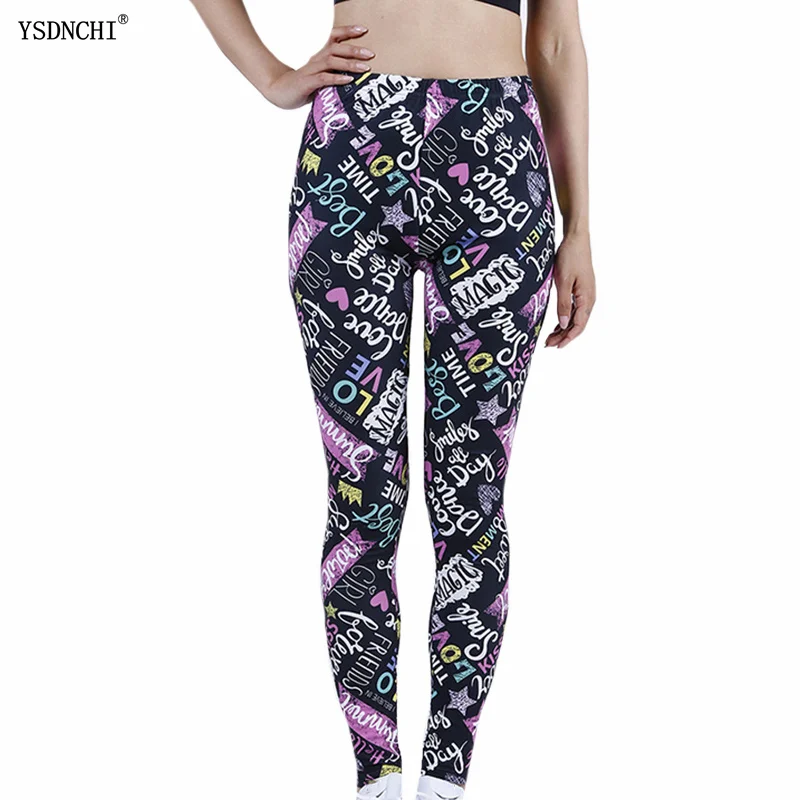 Леггинсы женские YSDNCHI, из полиэстера, с высокой талией, дышащие, до щиколотки, для тренировок, с буквенным принтом, пуш-ап