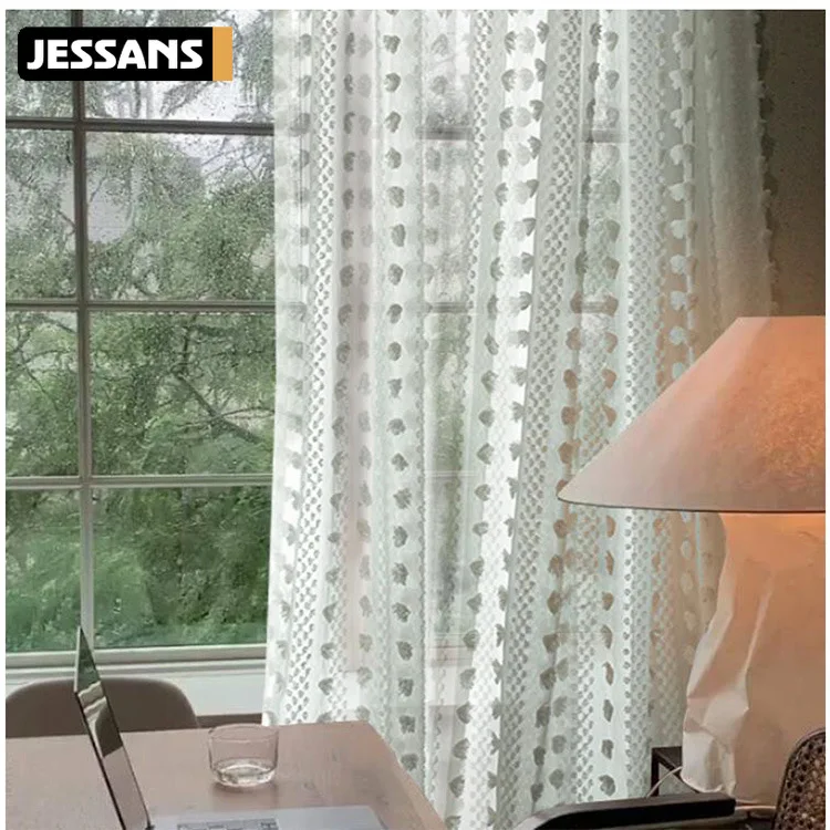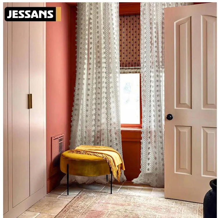 2022 Новые Ретро французские американские белые занавески с помпонами для пола балкона гостиной Оконные Занавески для гостиной столовой спальни
