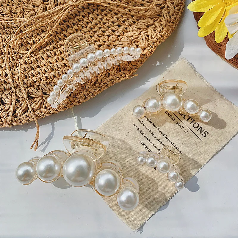Заколка для волос женская, акриловая, с жемчугом, большого размера