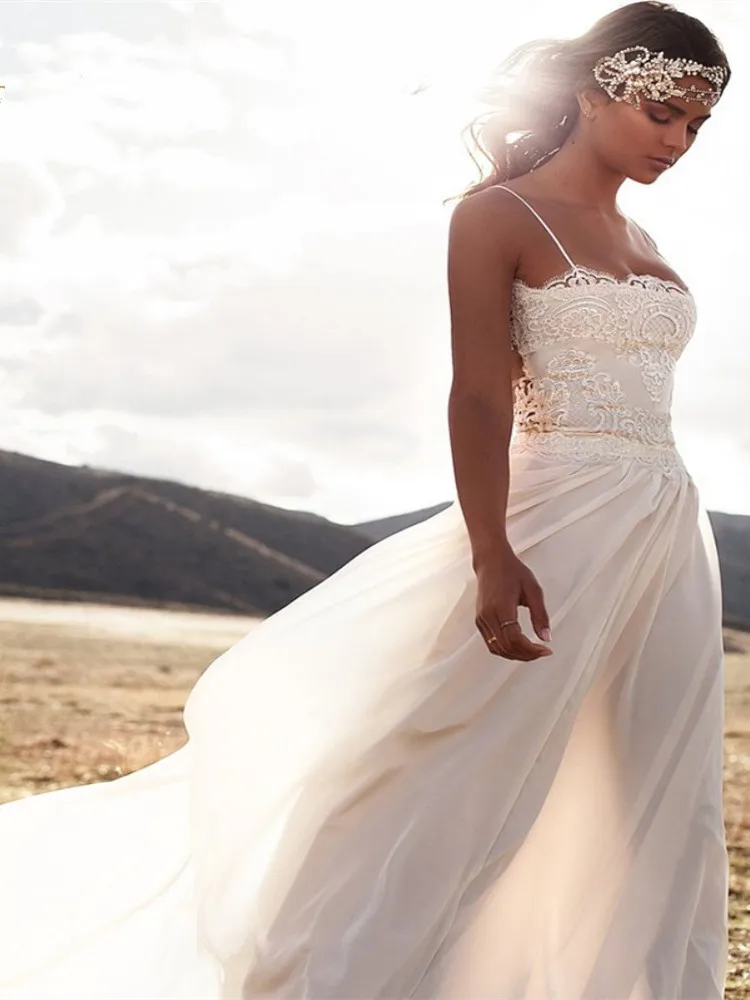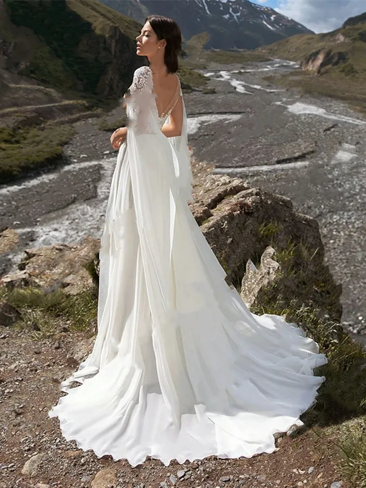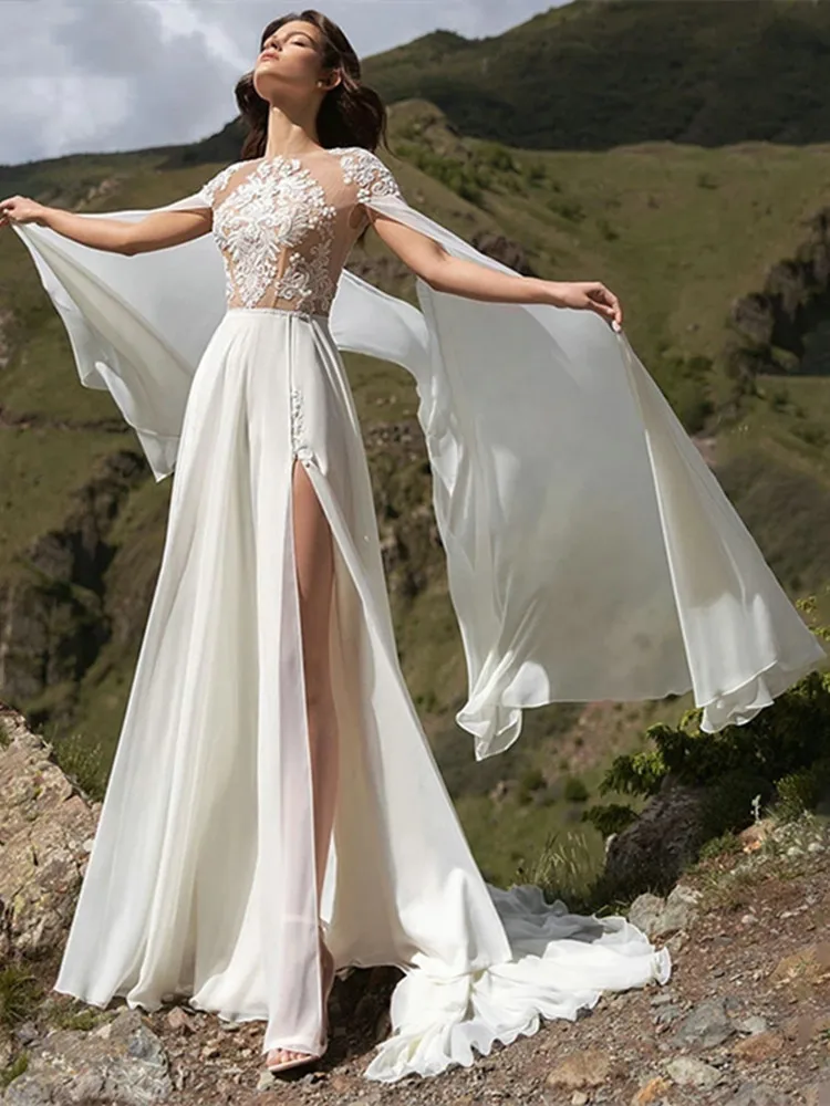 Сексуальные свадебные платья с разрезом 2021, шифоновое кружевное женское платье со шлейфом, элегантное платье невесты, новый стиль