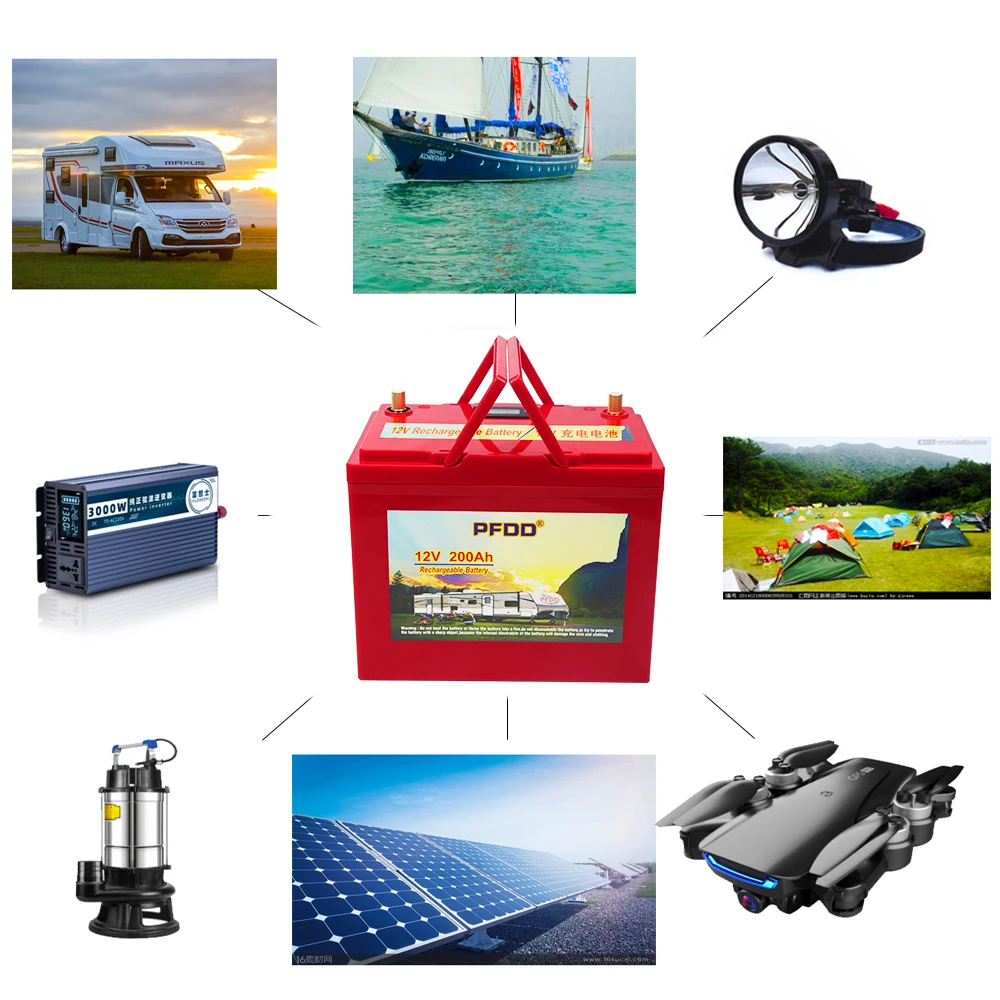 1 шт 12V/12,8 V 200Ah Высокая емкость lifepo4 Батарея пакет с BMS встроенный в такой стране, как.